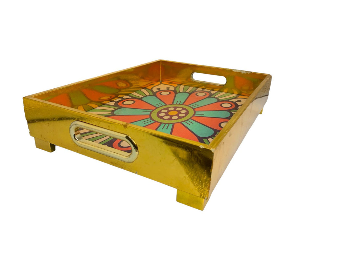 Golden Gloss Vibrant Mandala Art Wooden Tray