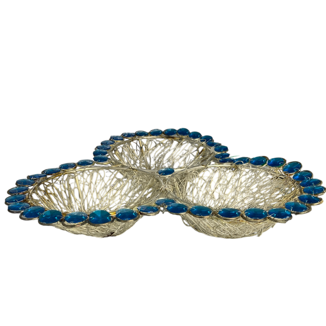 Trigonal Metal Wire Basket with Gemstone Border