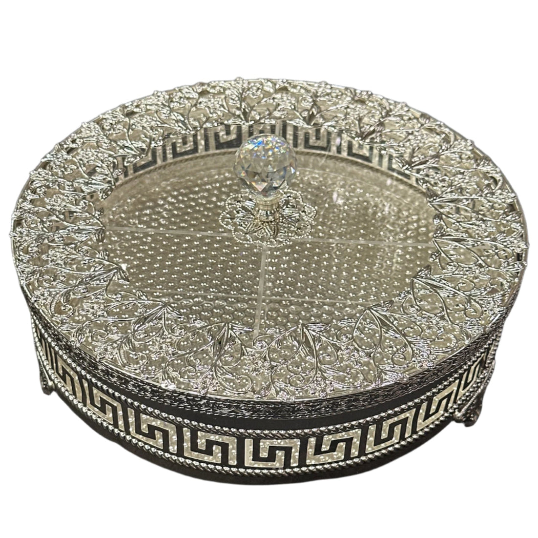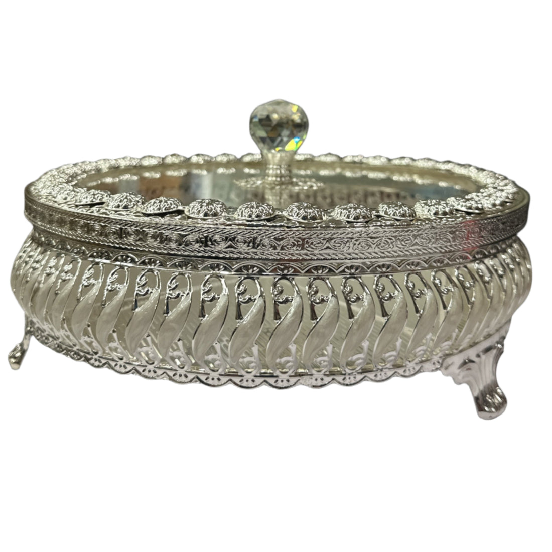 This beautifully designed silver-plated storage basket with a lid is a perfect combination of elegance...