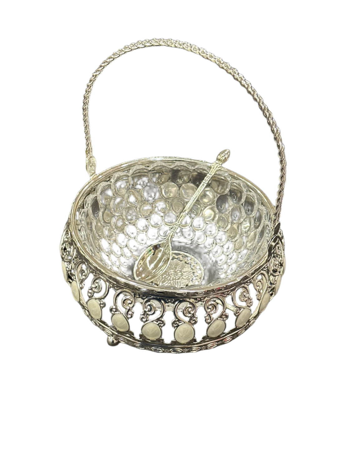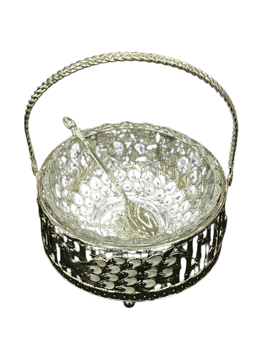 Silver-Plated Decorative Storage Basket with Handle