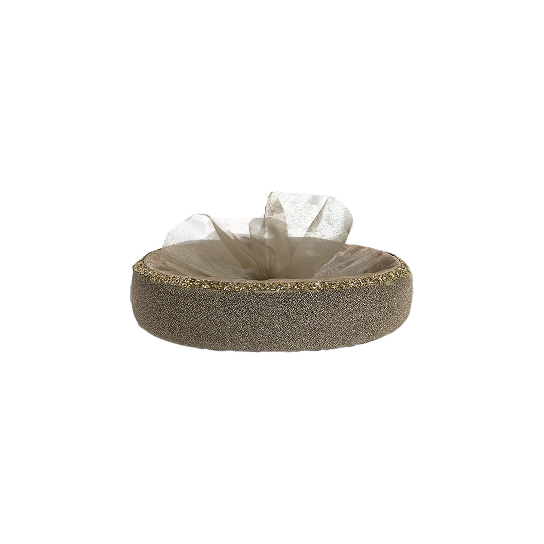Elevate your gifting and home decor with this Tulle Closure Oval Basket with Glitter Finish.Crafted...