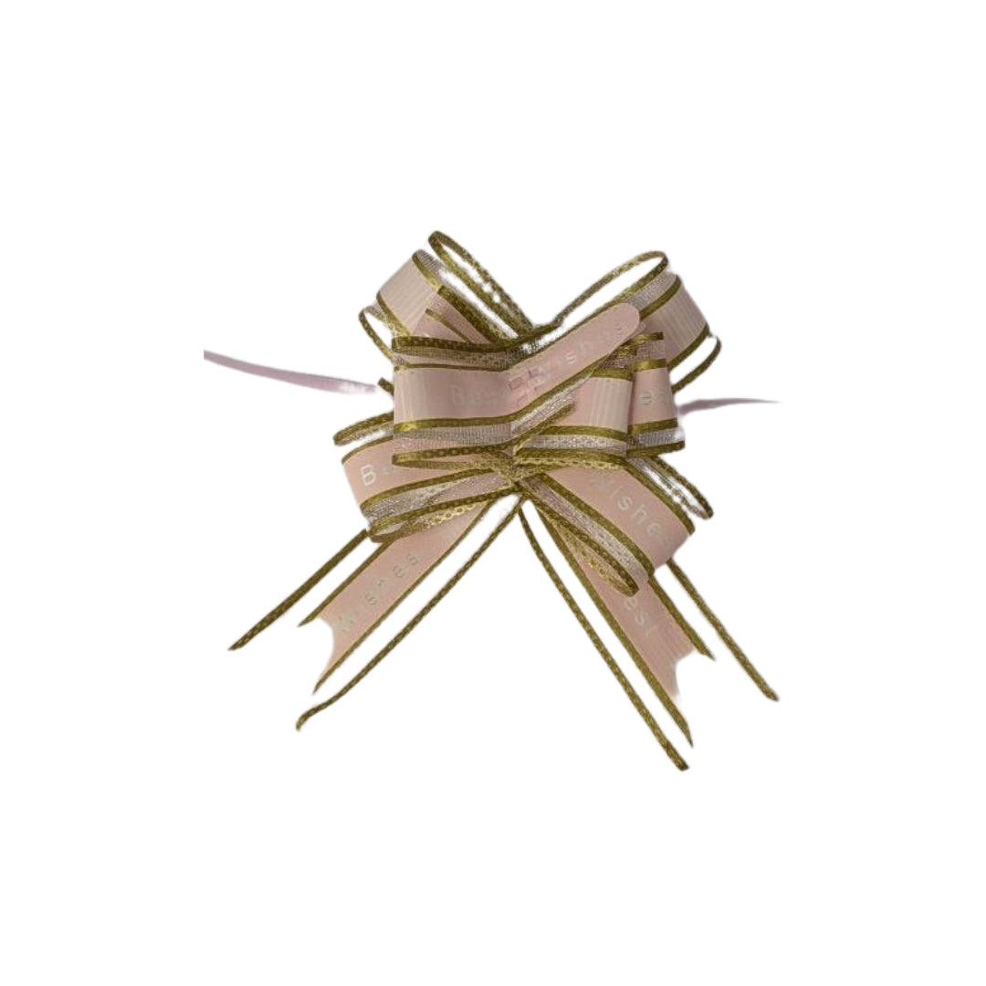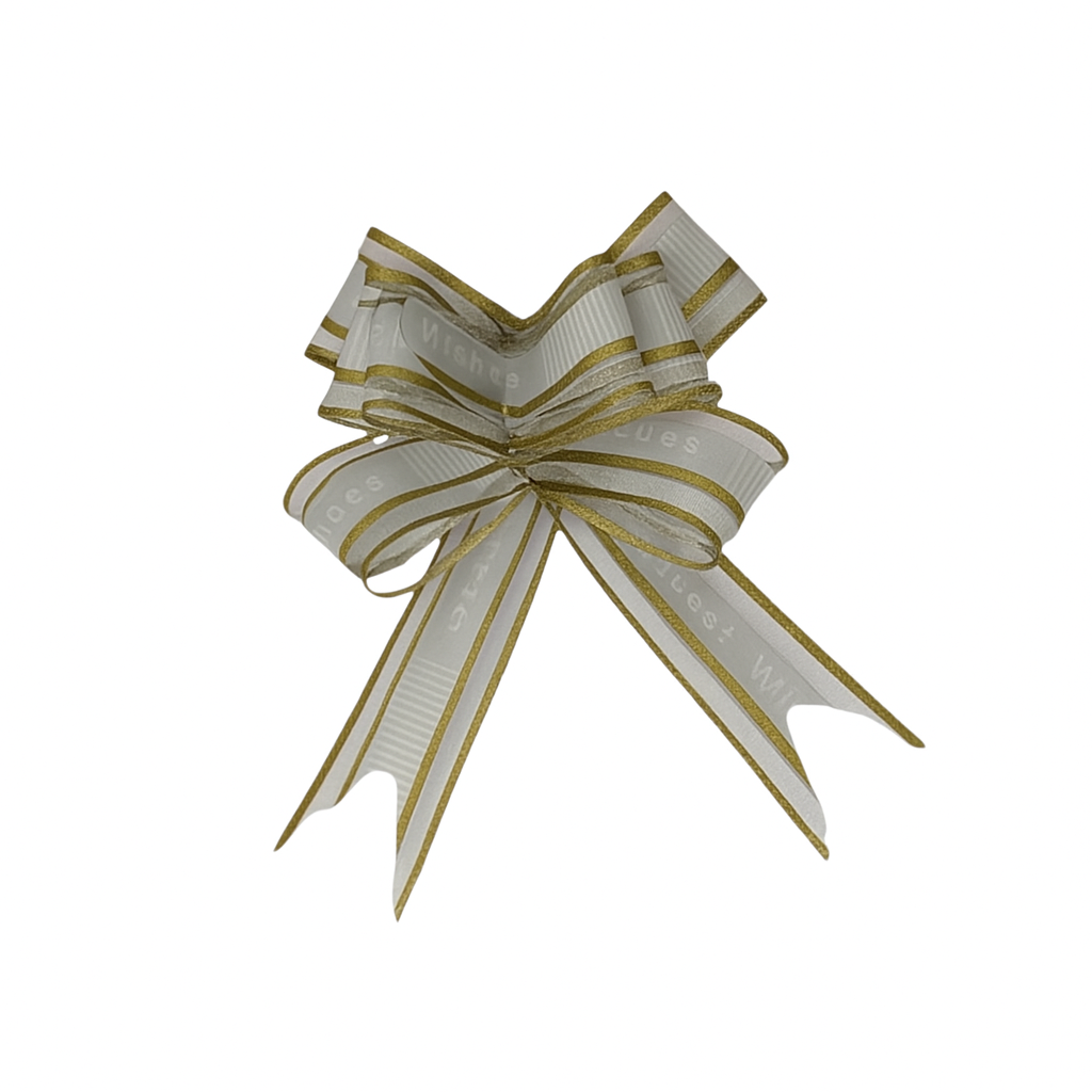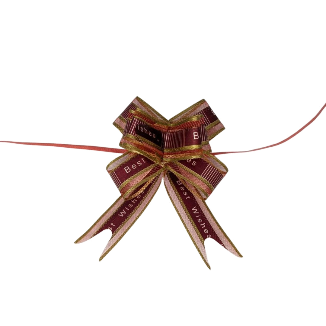 Add a luxurious touch to your gift wrapping and decorations with this Best Wishes Pull Bow Ribbon. Crafted from high-quality satin finish material, this bow features gold-edged detailing that enhances its sophisticated appeal. Easy to assemble with just a pull, it instantly forms a beautiful, voluminous bow perfect for gift boxes, hampers, floral arrangements, weddings, and festive decor.
