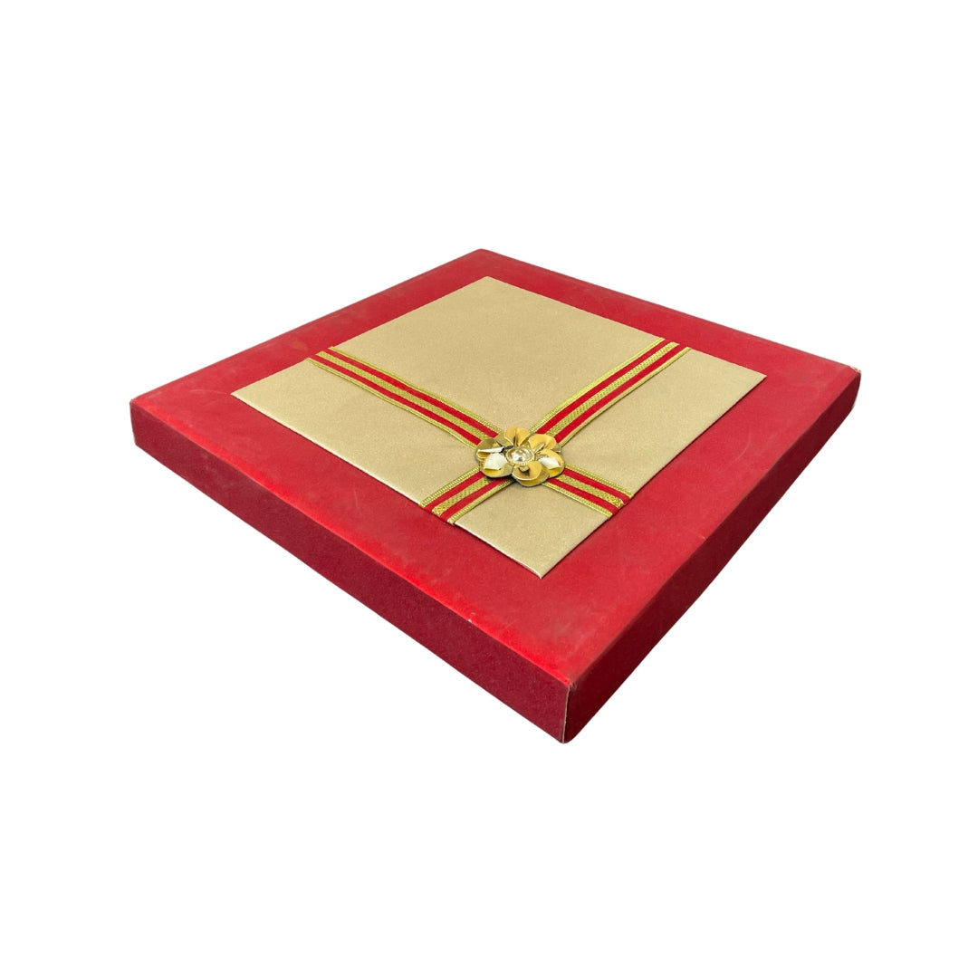 Elevate your festive gifting experience with this Red Velvet 4 Compartment Dry Fruit Box, designed with a luxurious combination of golden interior trays and a rich red exterior. The elegant gold accent ribbon with a floral embellishment adds a touch of sophistication, making it ideal for festivals, weddings, corporate gifting, and special celebrations.