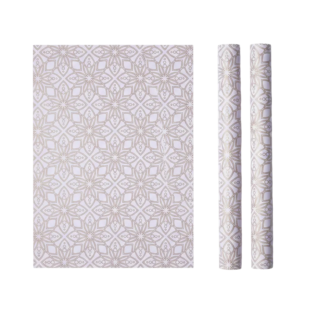 Make every gift unforgettable with this Stars And Lines Design Gift Wrap, featuring a refined pattern of symmetrical flowers and modern line art. The combination of soft gold outlines on a light background creates a sophisticated and timeless look, perfect for both festive occasions and everyday gifting.