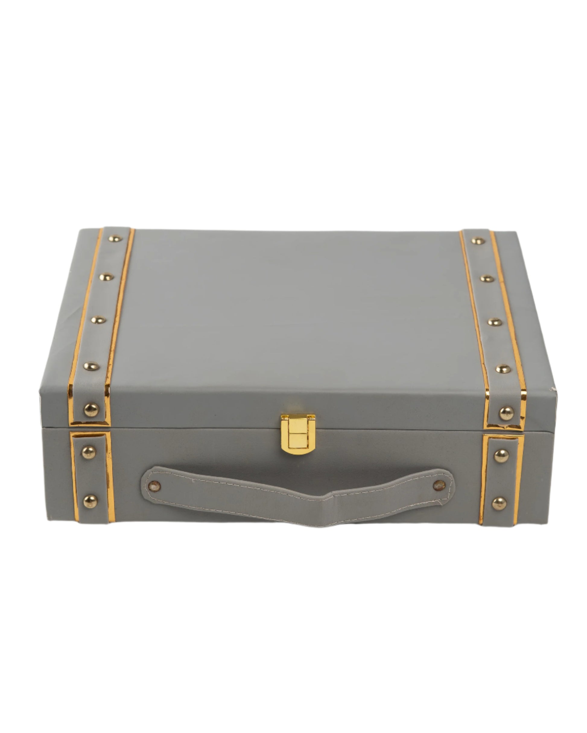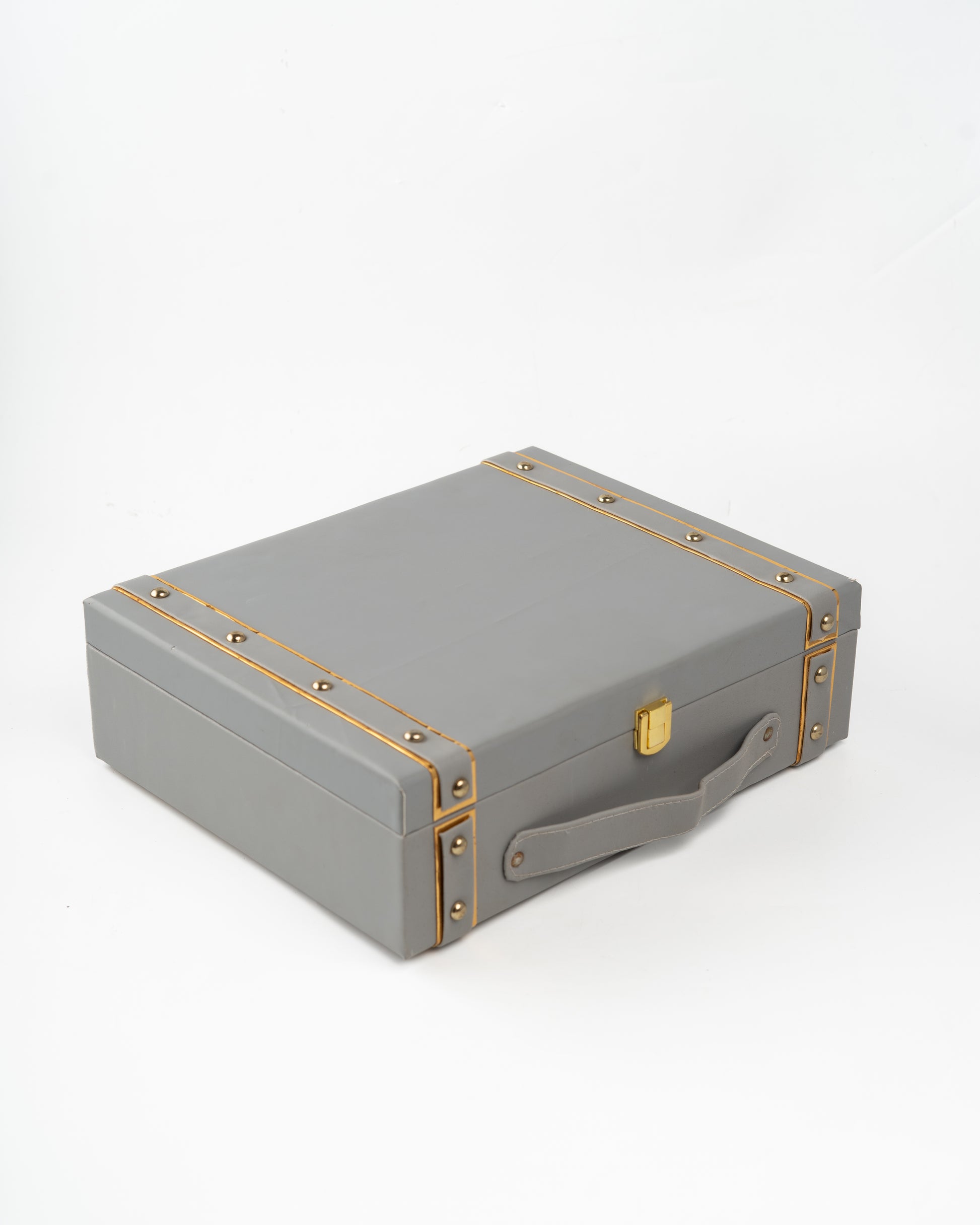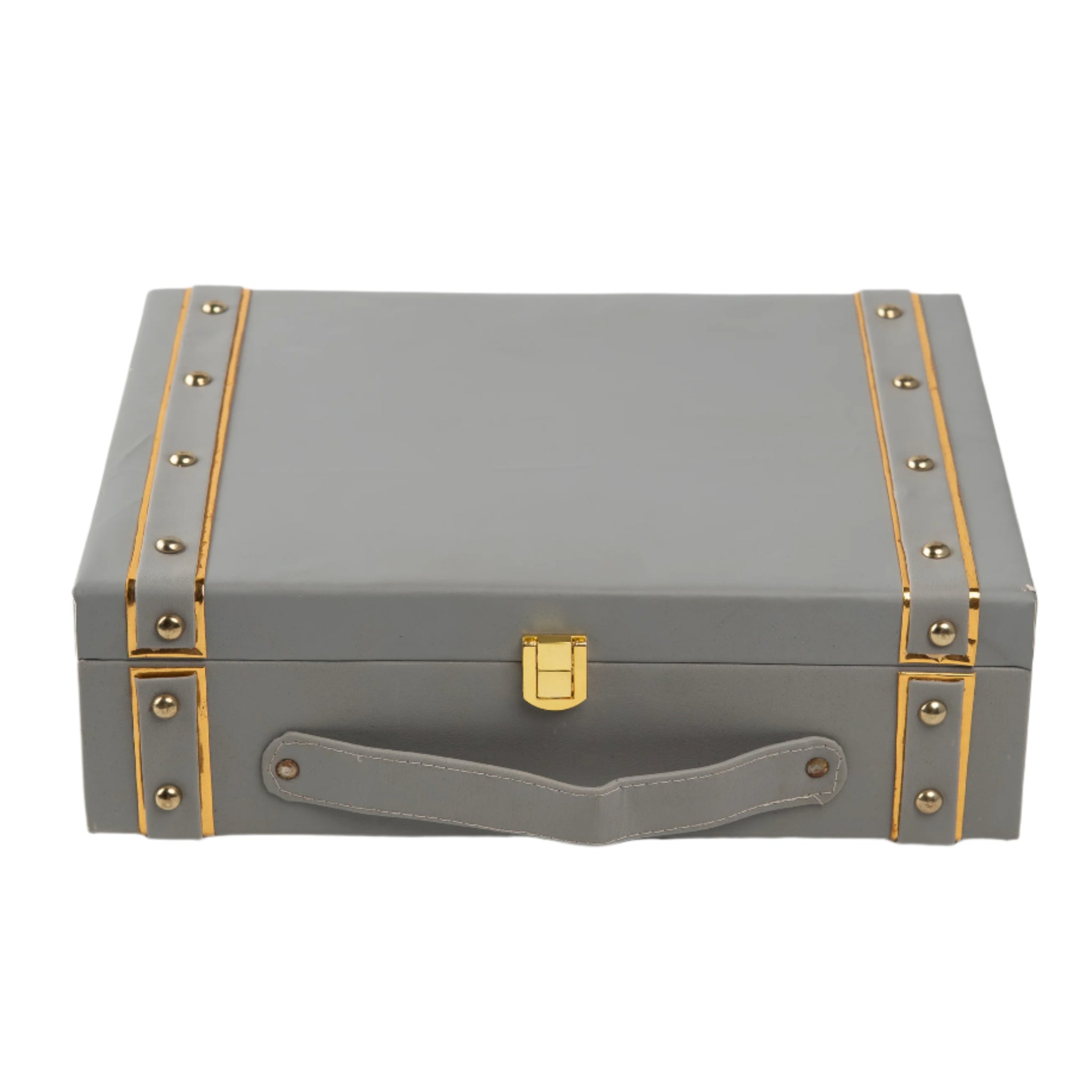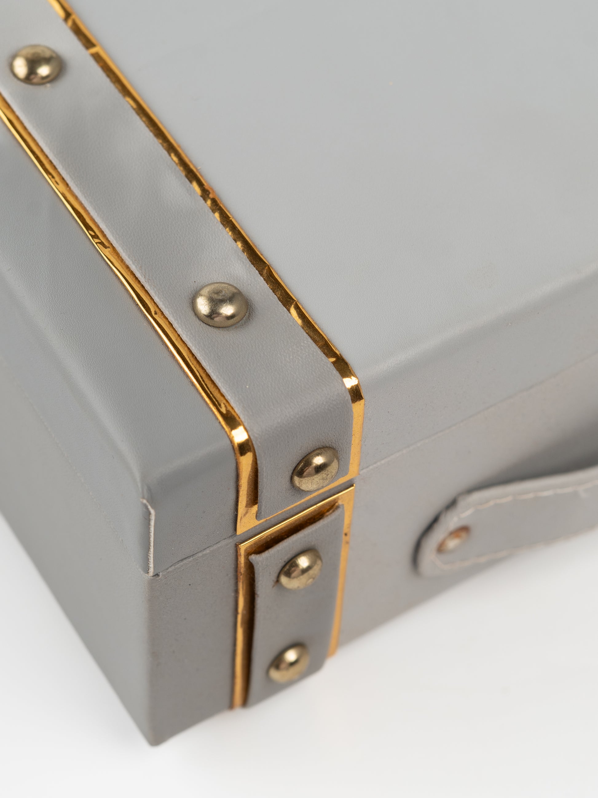 Grey Faux Leather Suitcase Paper Box with Gold Detailing