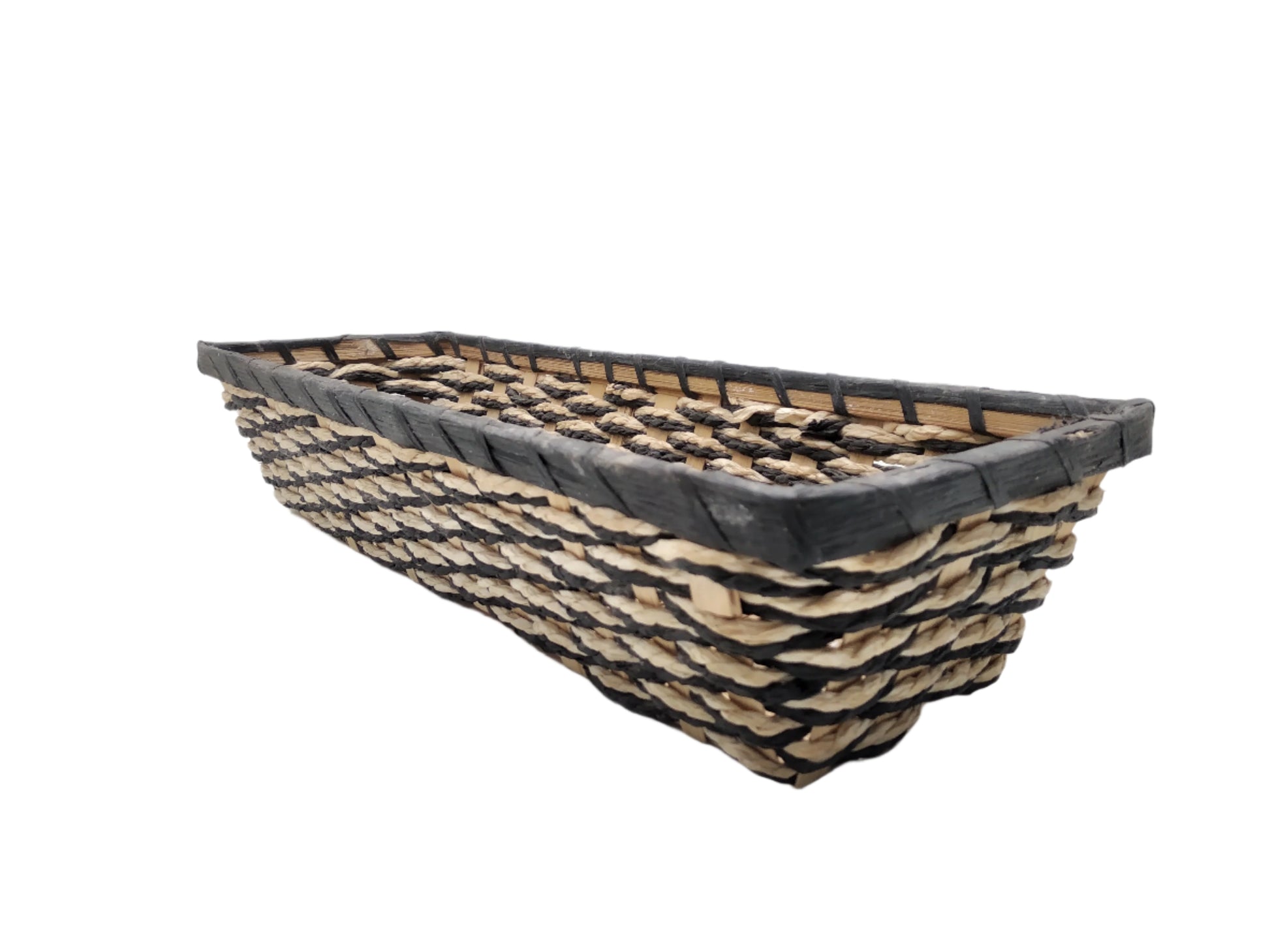 Organize in style with this Handwoven Rectangular Storage Basket, featuring an elegant black and natural two-tone pattern. Crafted by skilled artisans using eco-friendly natural fibers, this sturdy yet lightweight basket is ideal for holding bread, fruits, snacks, or small household items.