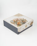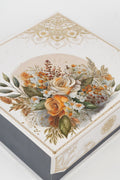 Crafted with a luxurious floral theme in soft beige, gold, and autumn hues, this sturdy box features detailed artwork and gold accents—ideal for gifting or display. -