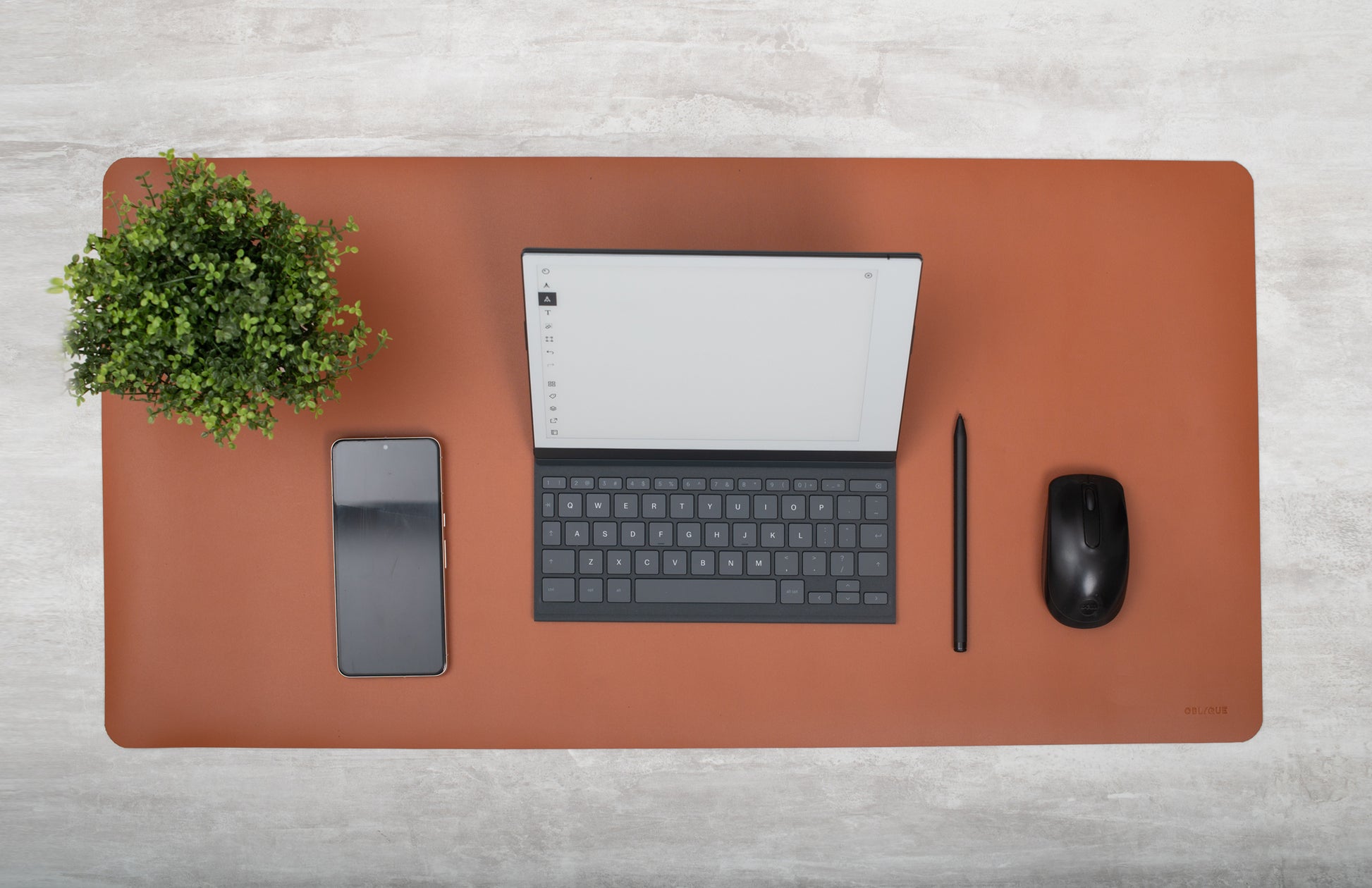 Whether you're working from home, in the office, or at your favorite café, this desk mat is your ultimate productivity companion. Its rollable design ensures portability, while the reversible black and tan color palette lets you switch up your workspace vibe anytime you like.