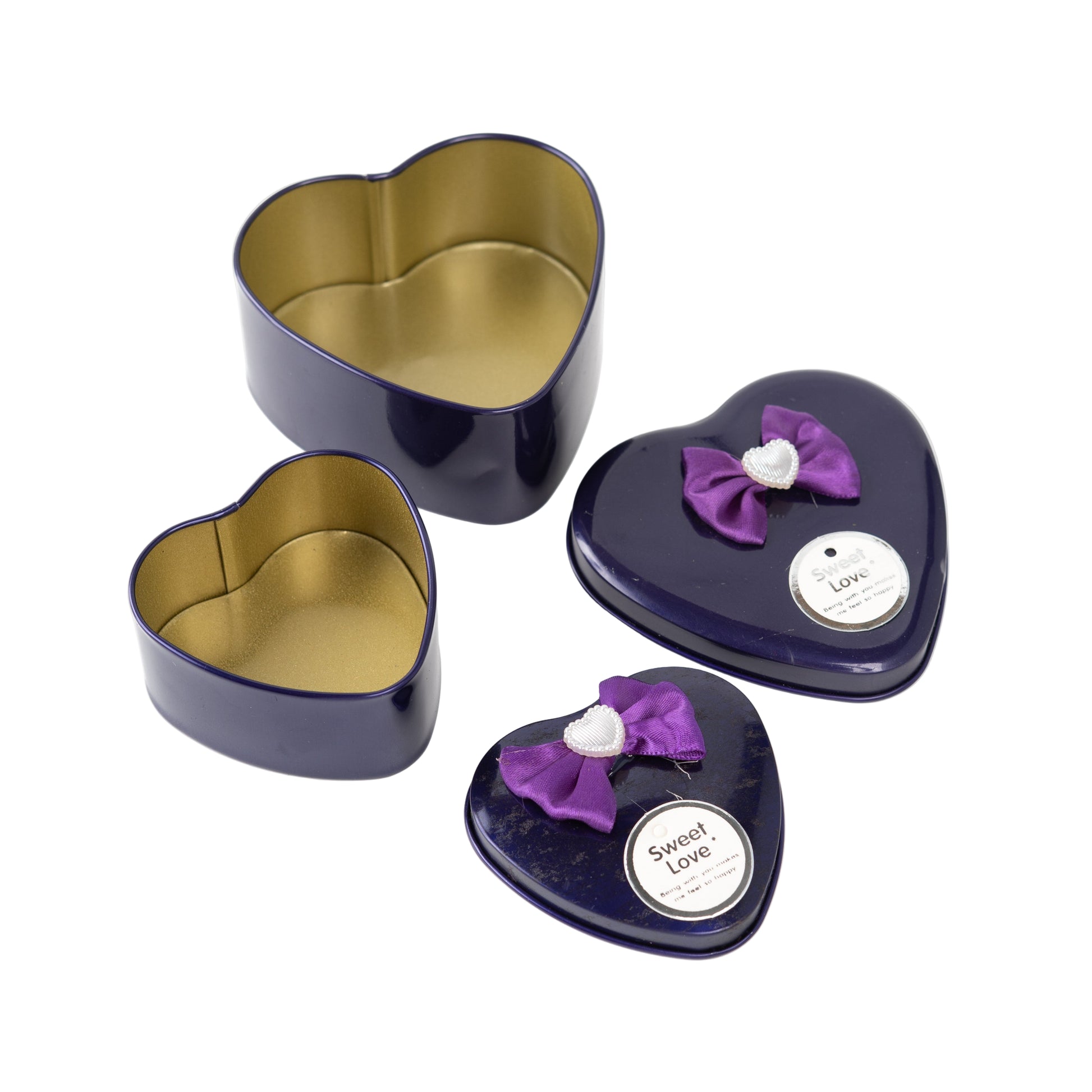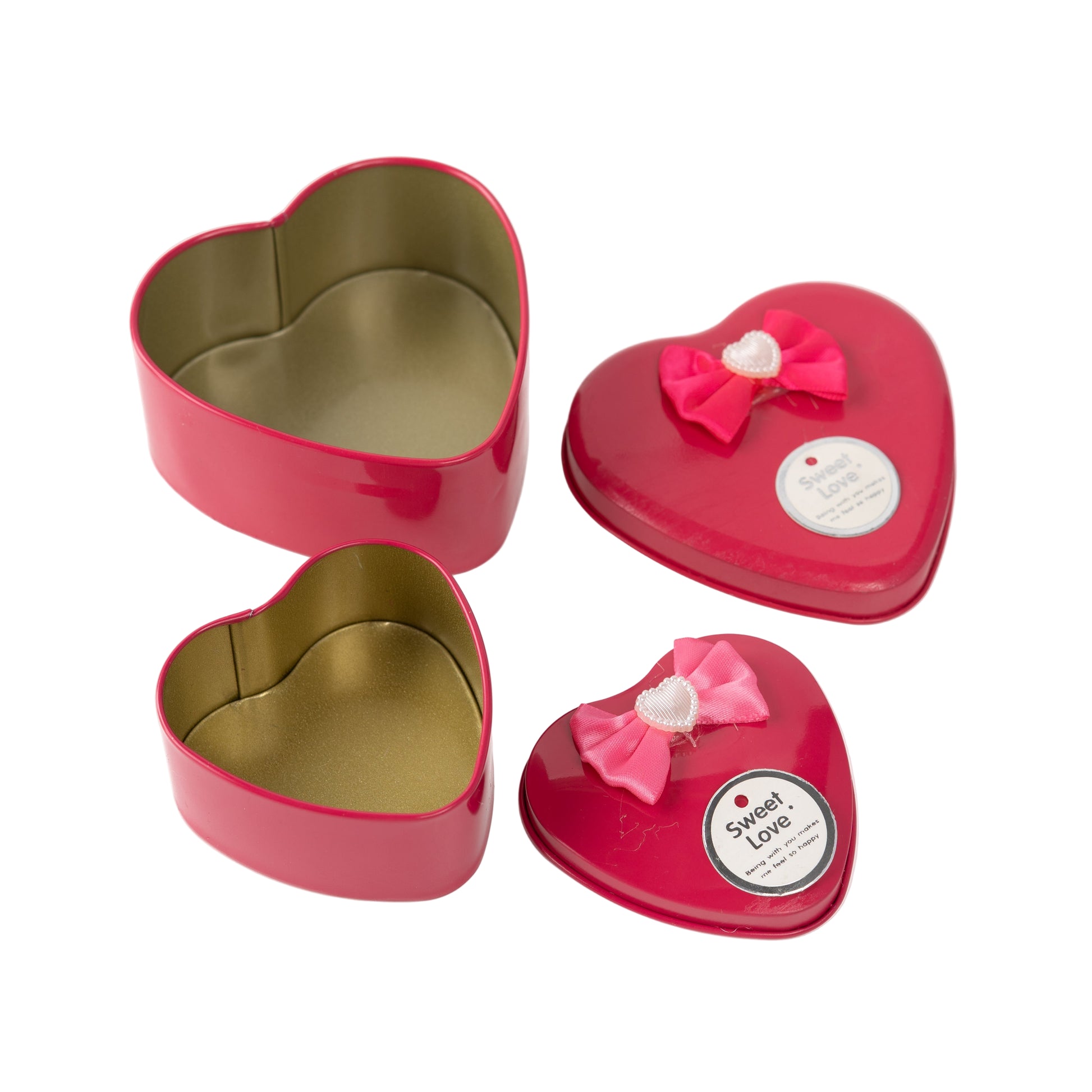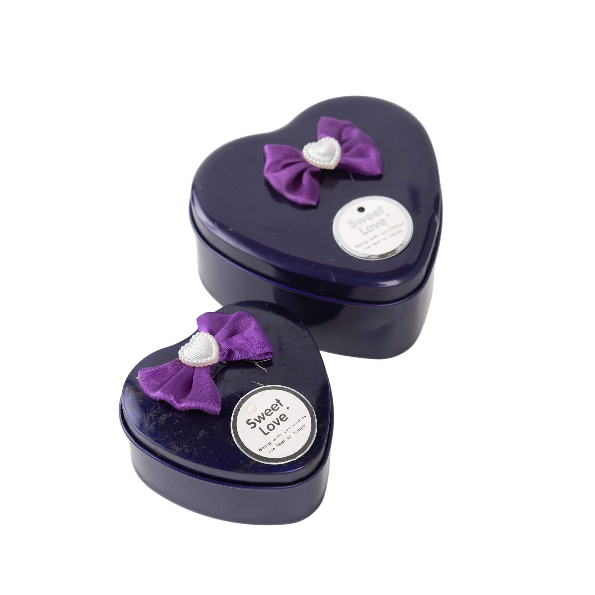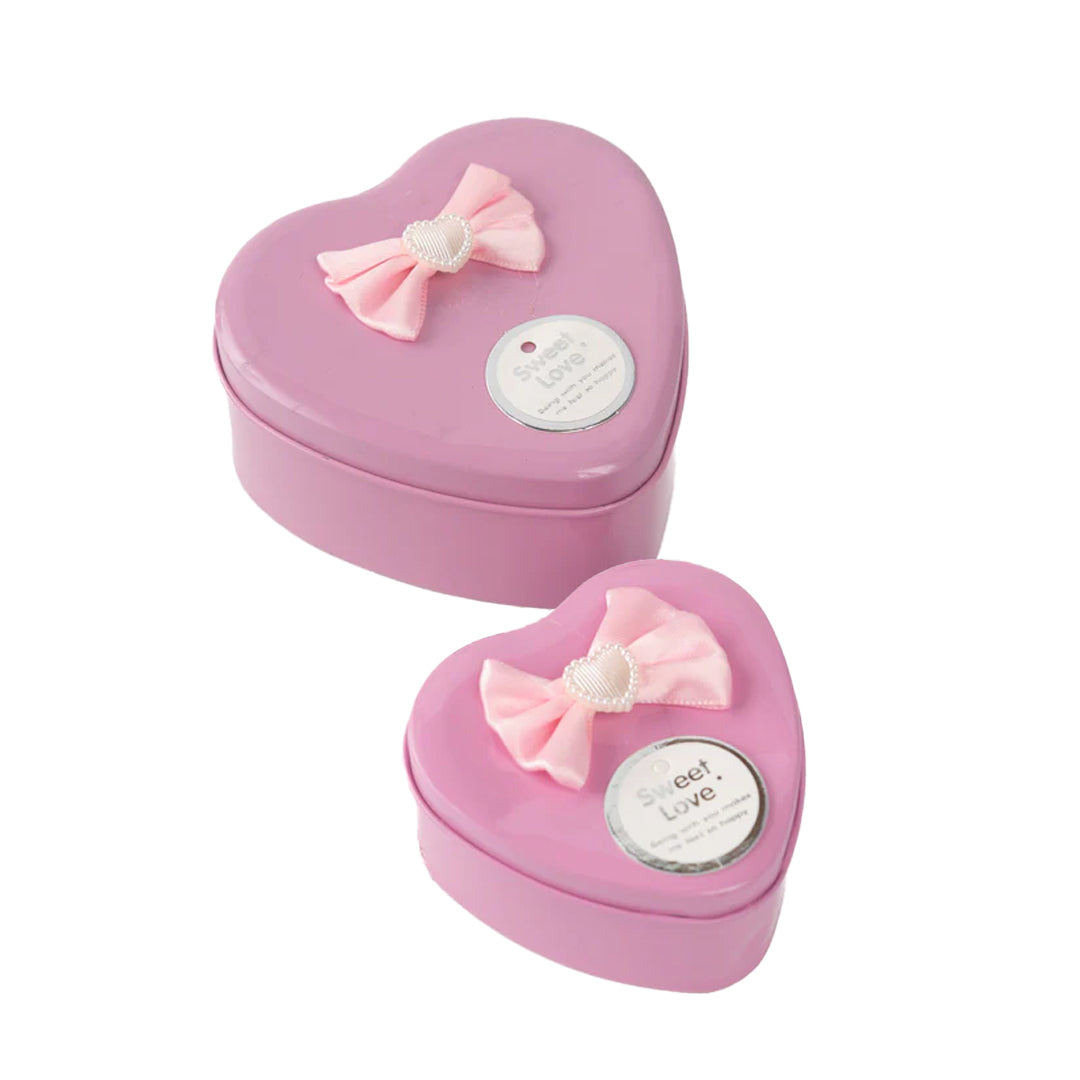 • Set includes 2 heart-shaped metal tins