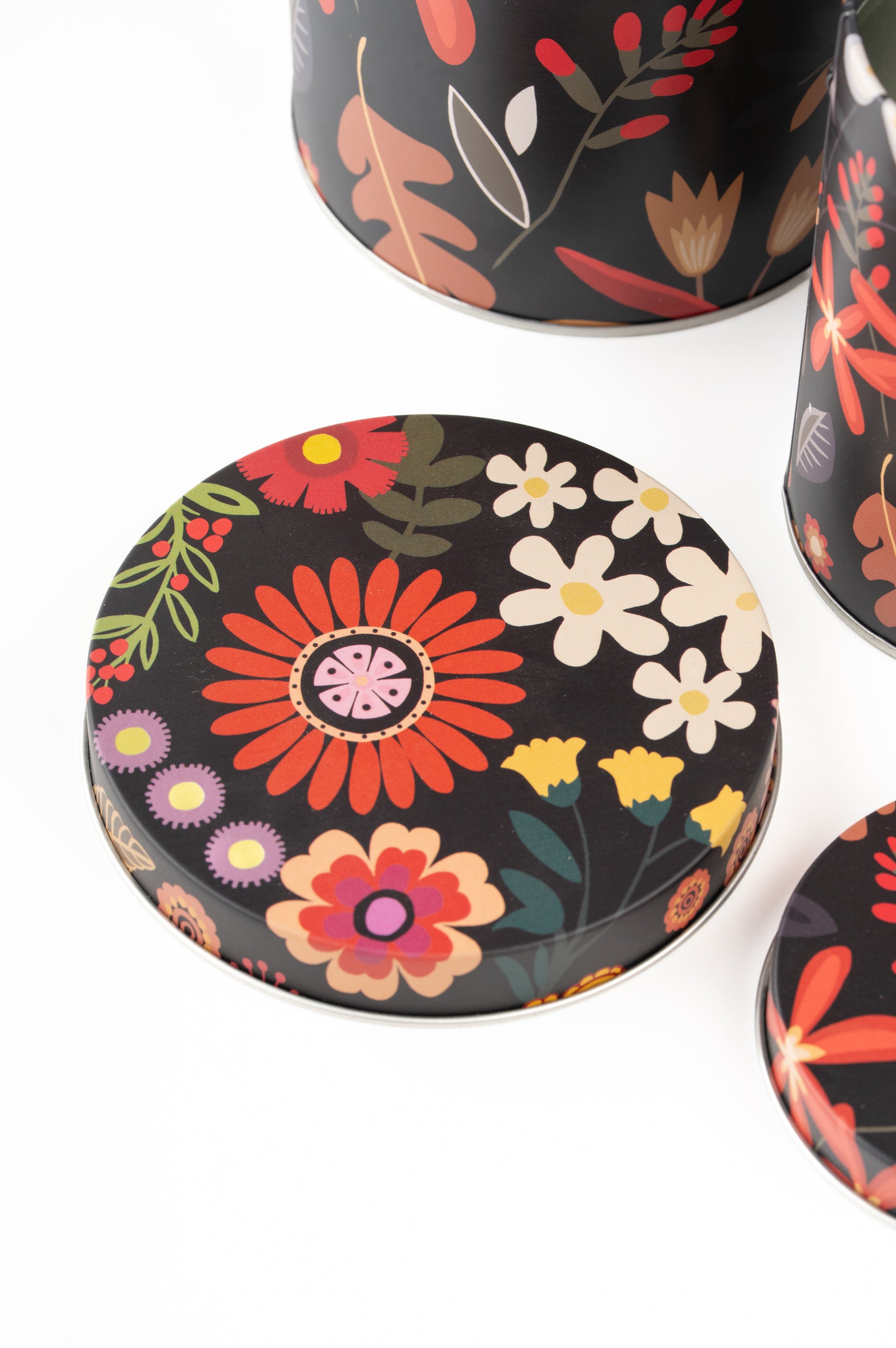 Noir Floral Tin Metal Containers