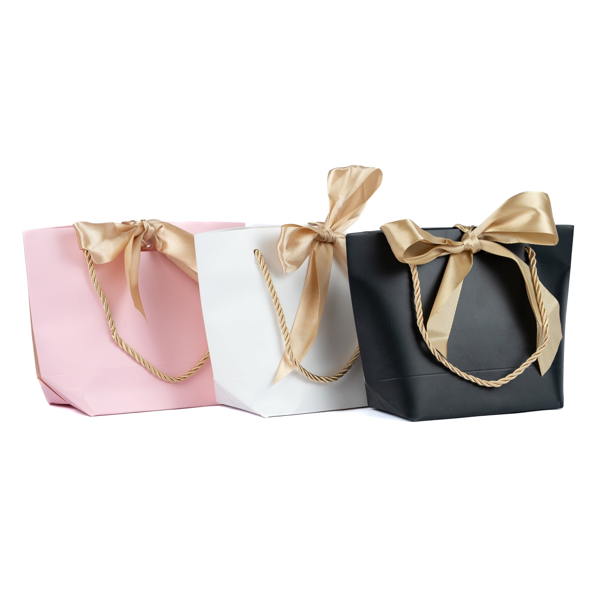 Crafted from high-quality, durable paper, these gift bags are built to hold various gift types, from clothing and accessories to small home goods and cosmetics. The sturdy twisted rope handles ensure easy carrying, while the satin ribbon adds a luxurious touch that makes each bag an extension of the gift itself.