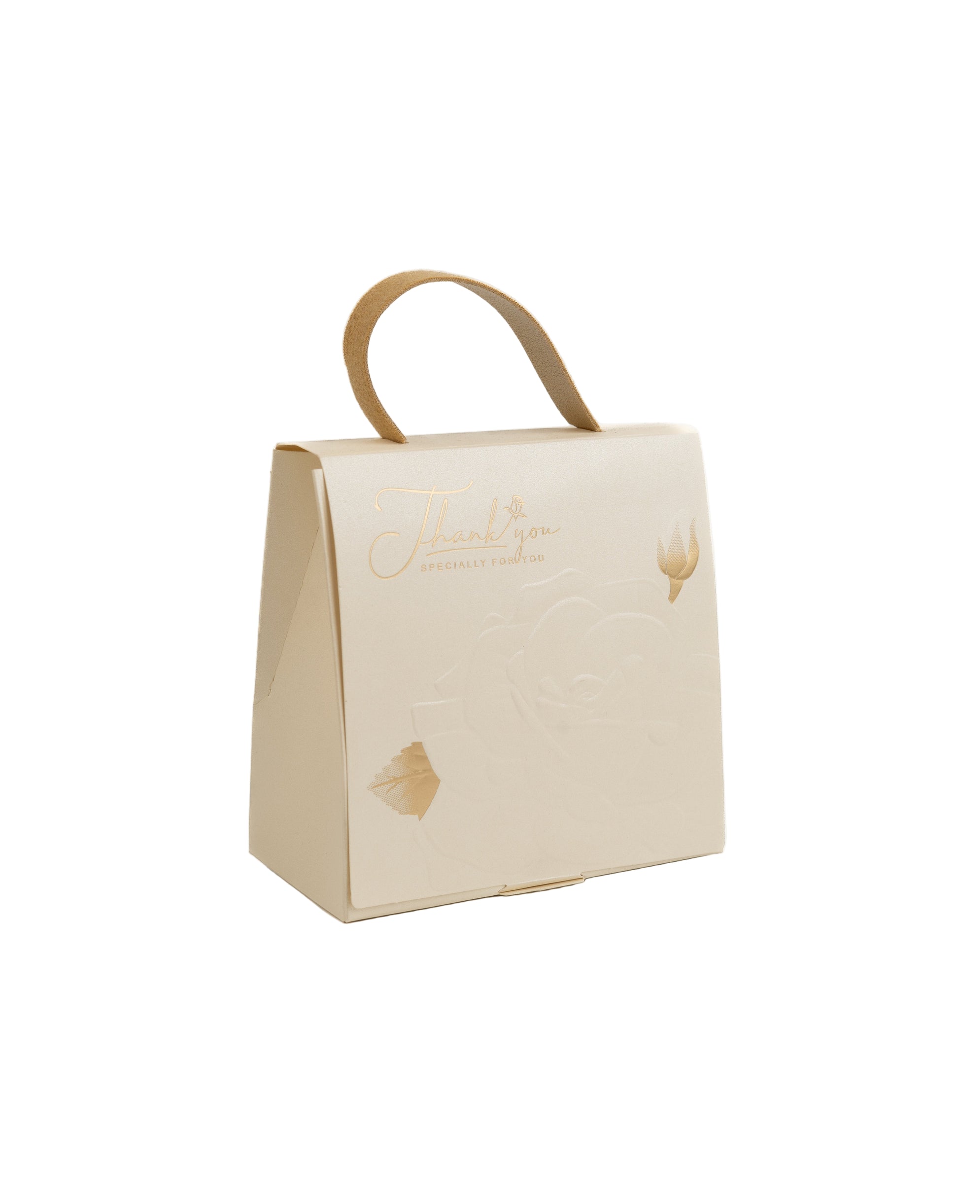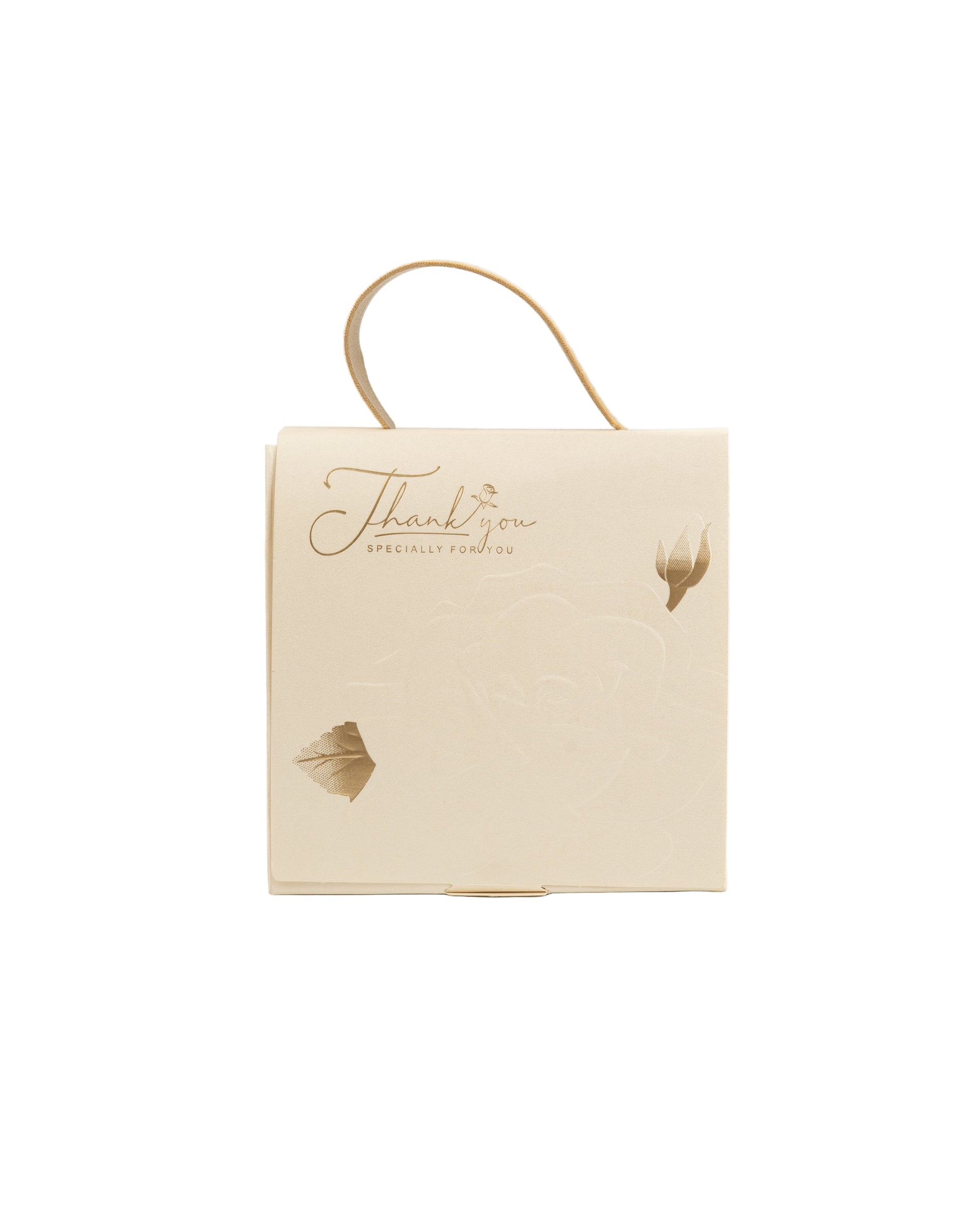 Our Classy Cream Foldable Paper Box is designed to turn every present into a treasured memory. With its delicate embossed floral design and soft cream finish accented with gold details, this gift box exudes sophistication. Perfect for weddings, anniversaries, birthdays, or corporate events, it offers a blend of style, durability, and heartfelt charm.