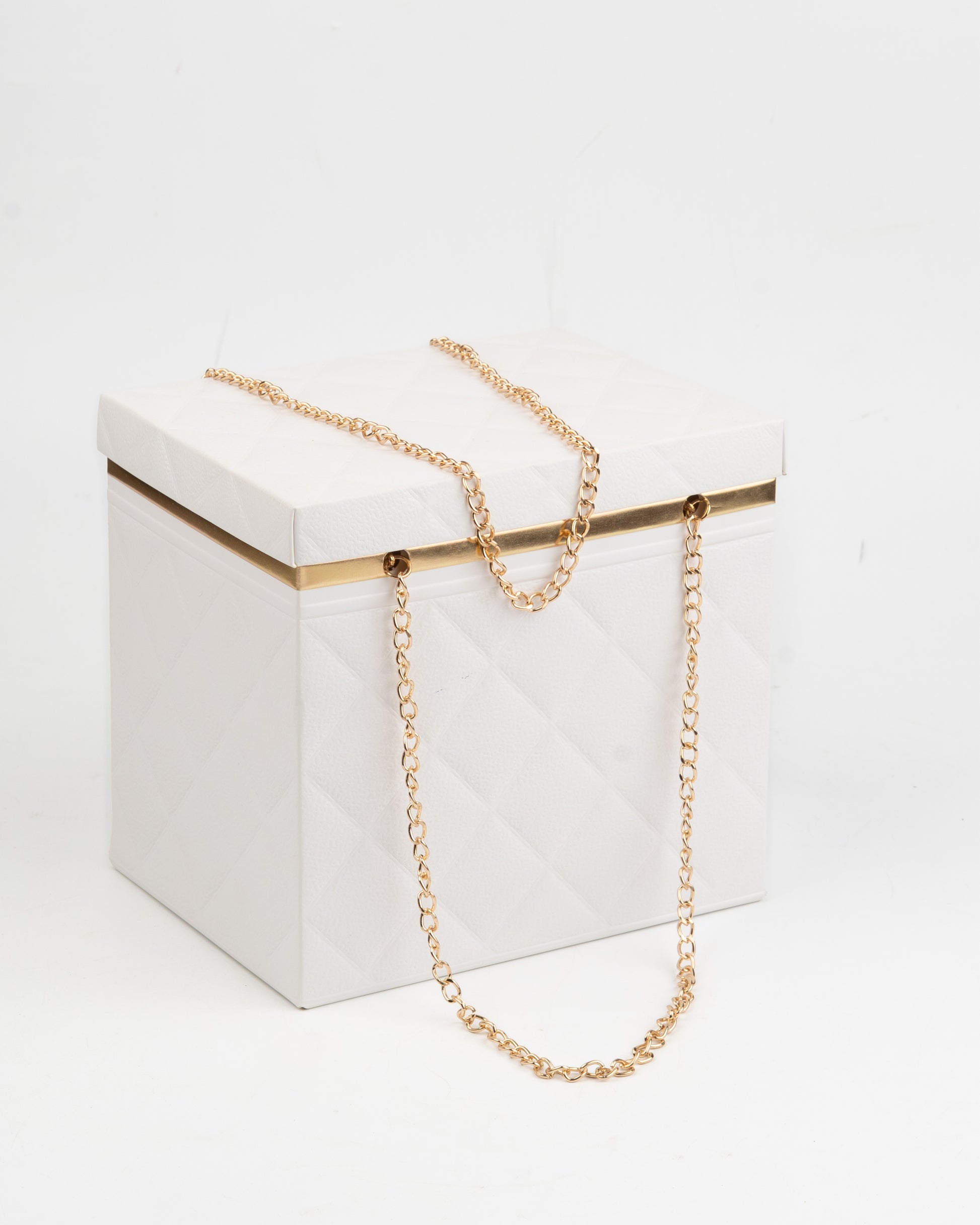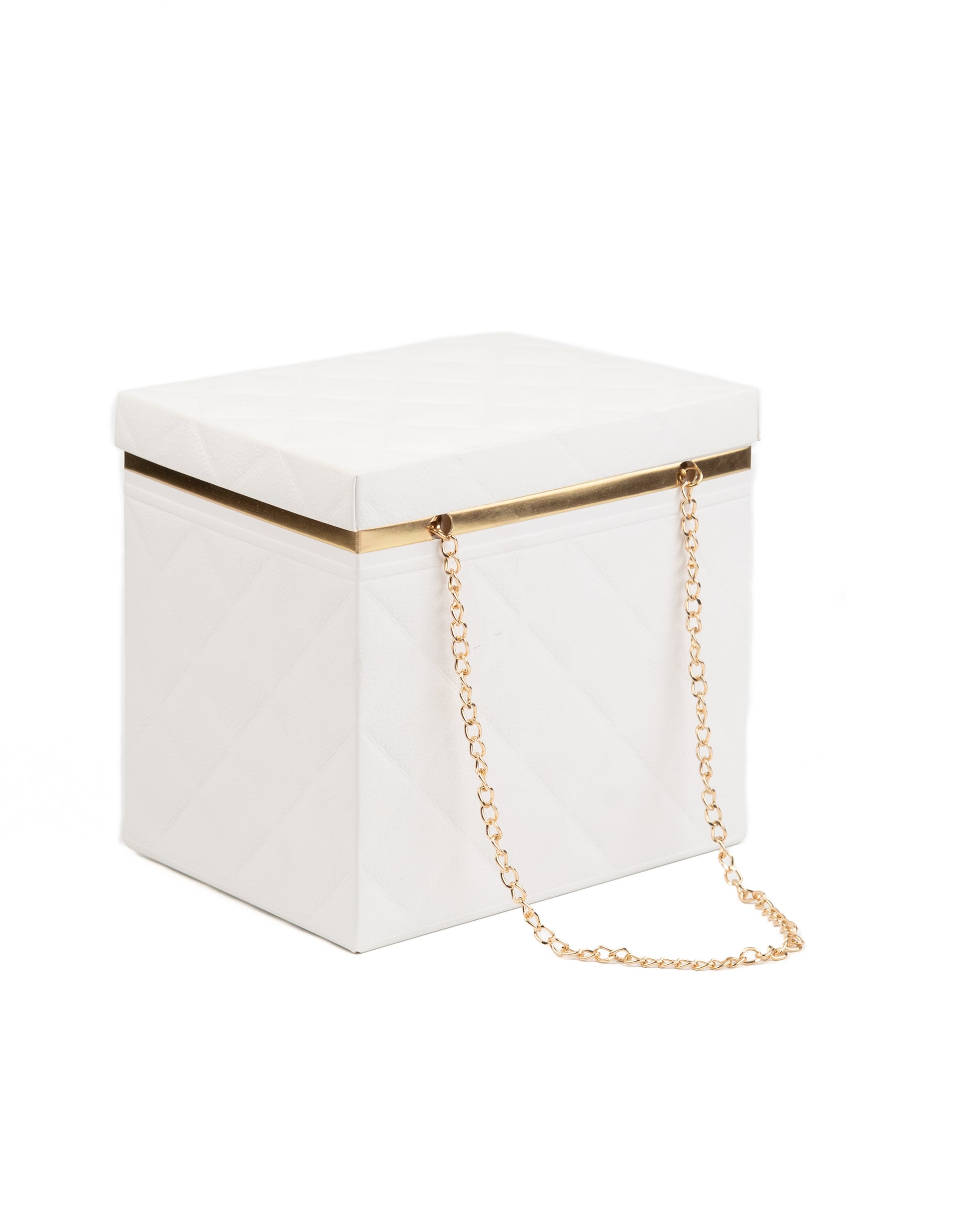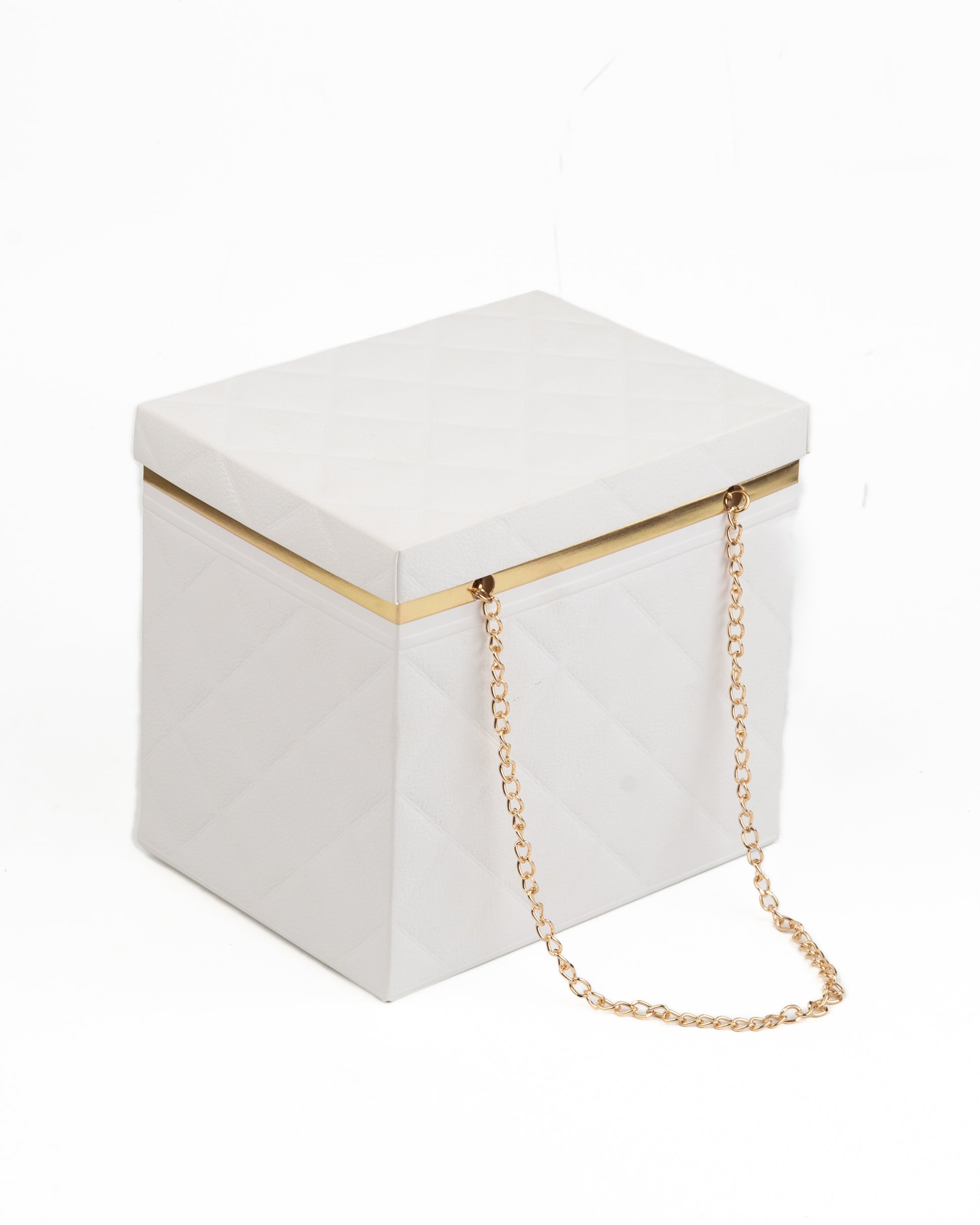 Quilted Foldable Paper Box with Gold Chain Handle