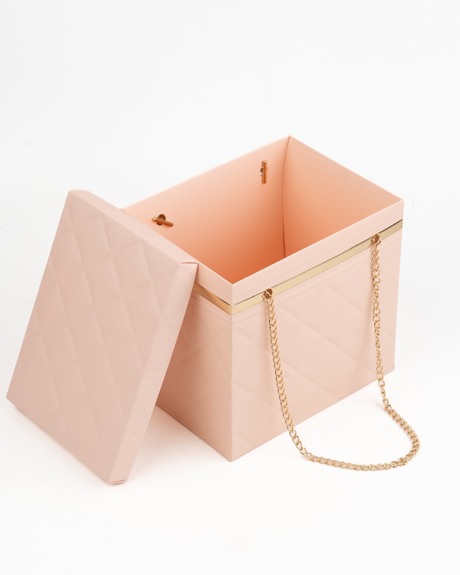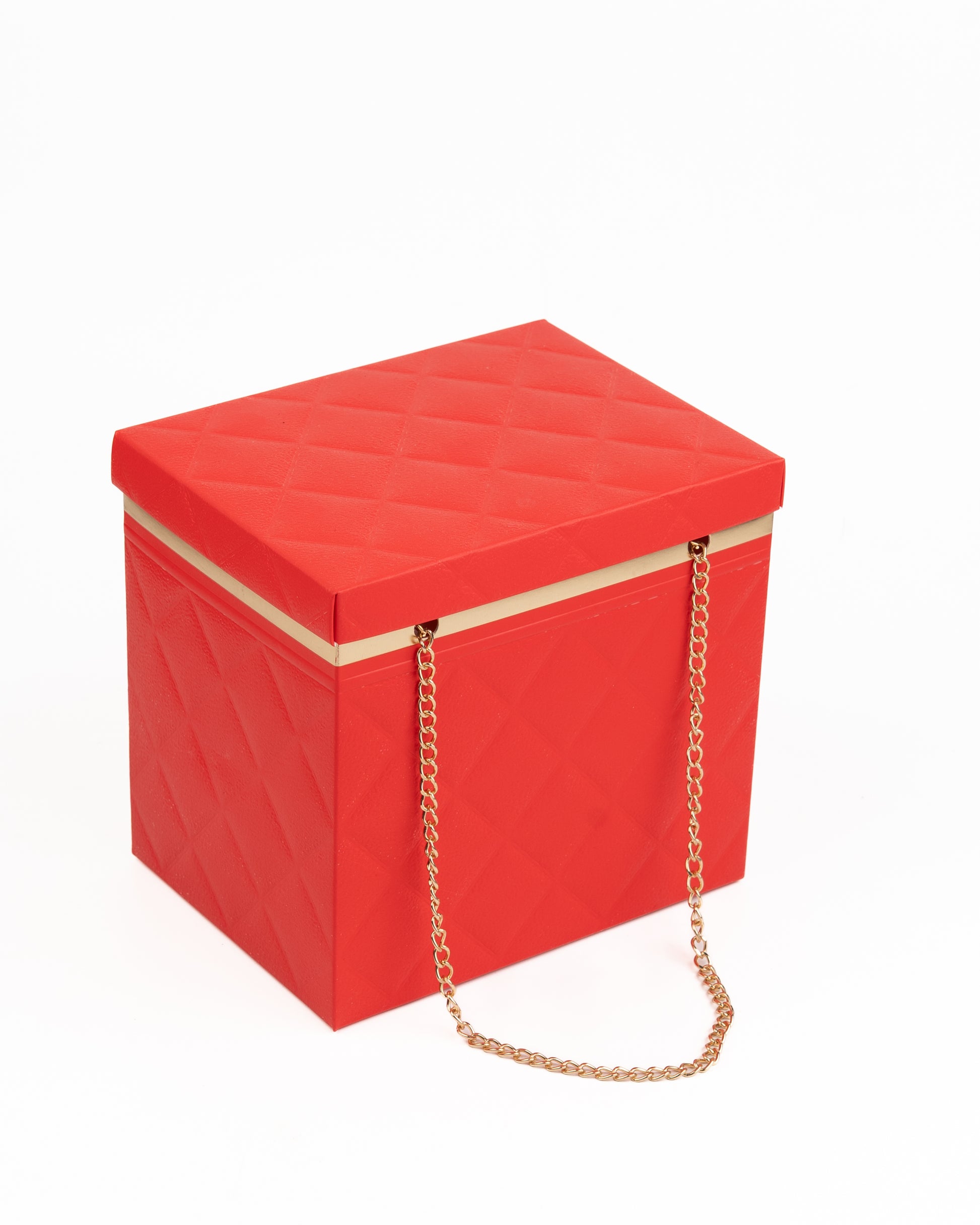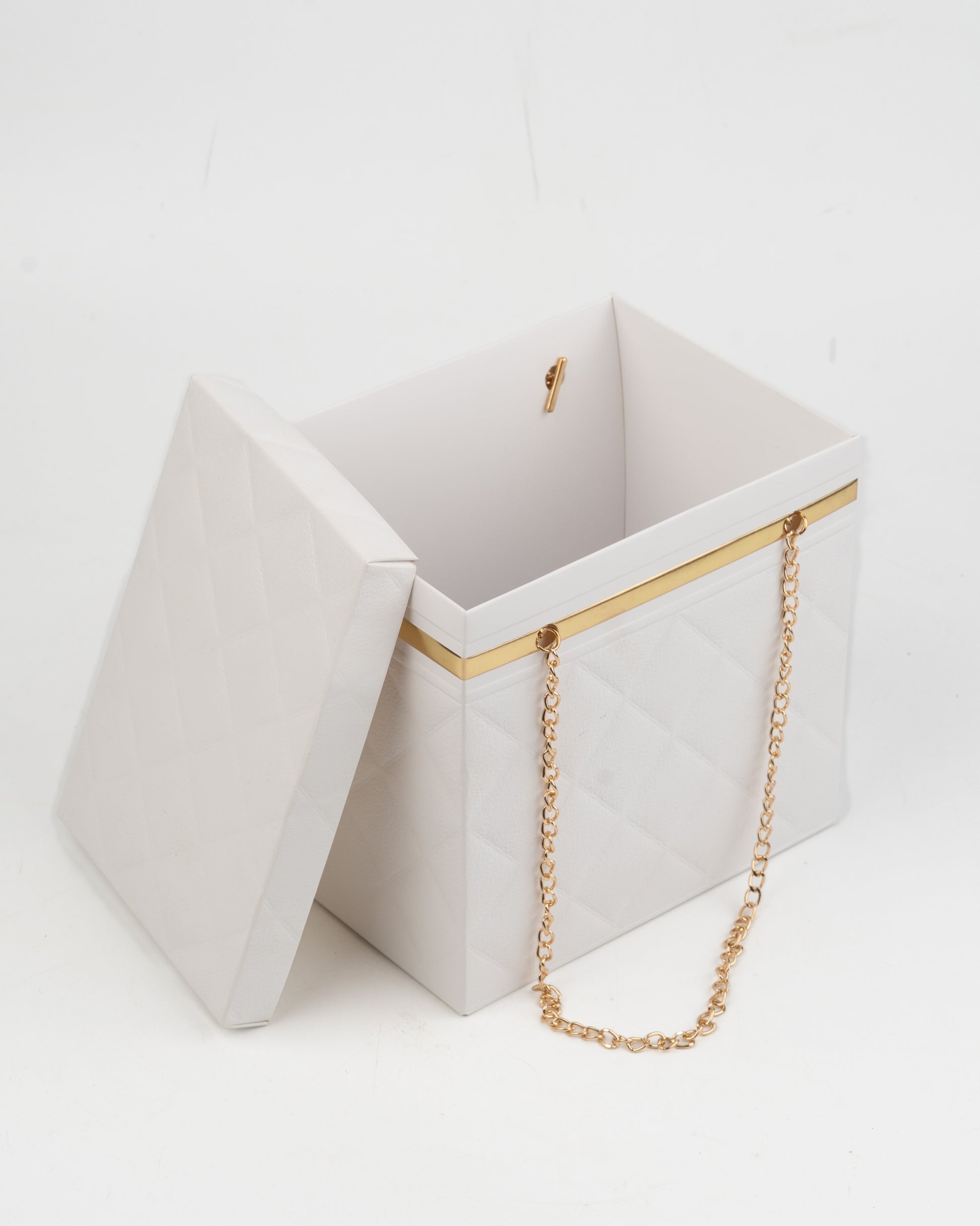 Quilted Foldable Paper Box with Gold Chain Handle