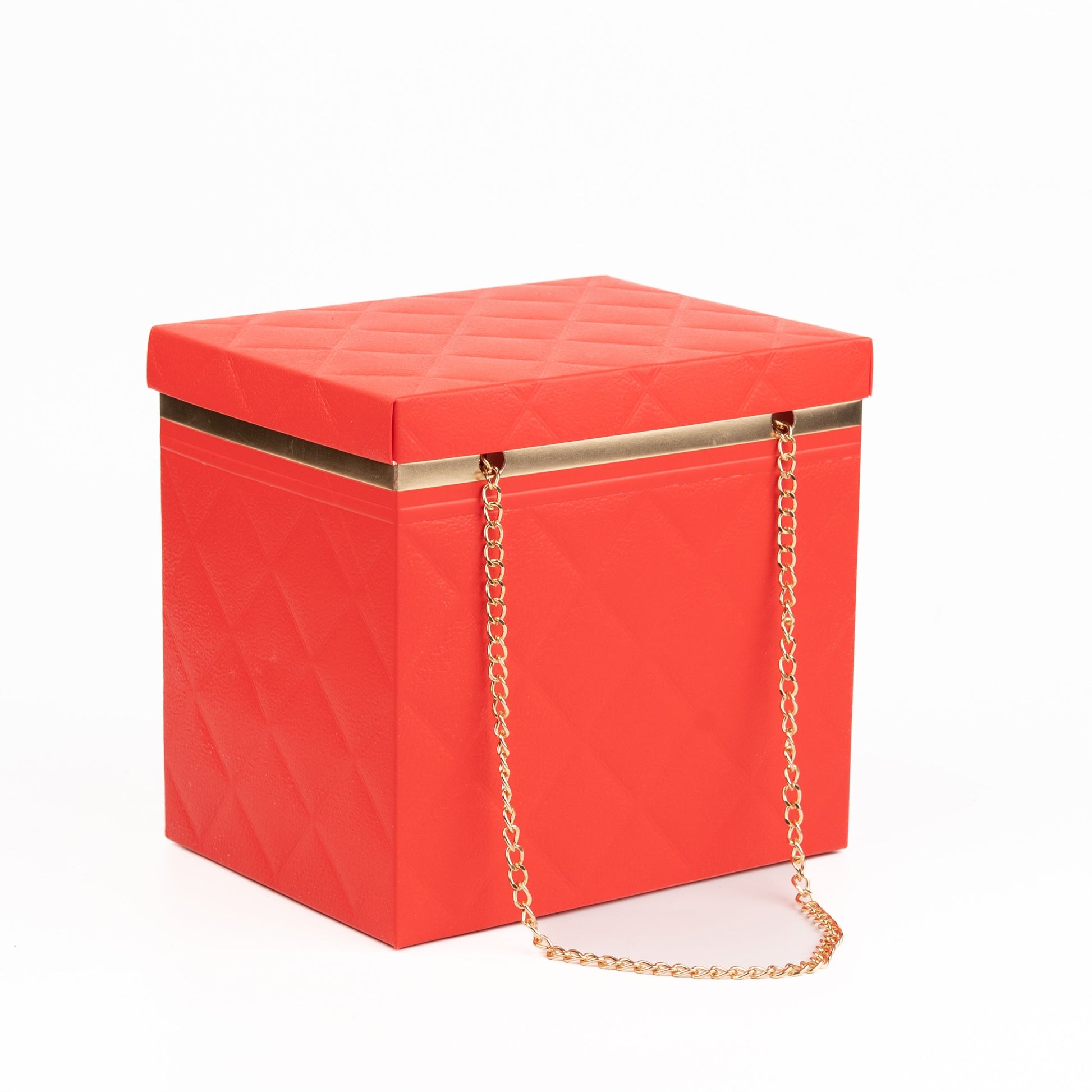 Present your gifts in style with our Quilted Foldable Paper Box with Gold Chain Handle, designed to impress while being practical. This premium paper box combines a sophisticated quilted texture with a gleaming gold chain handle, making it as beautiful as it is functional.