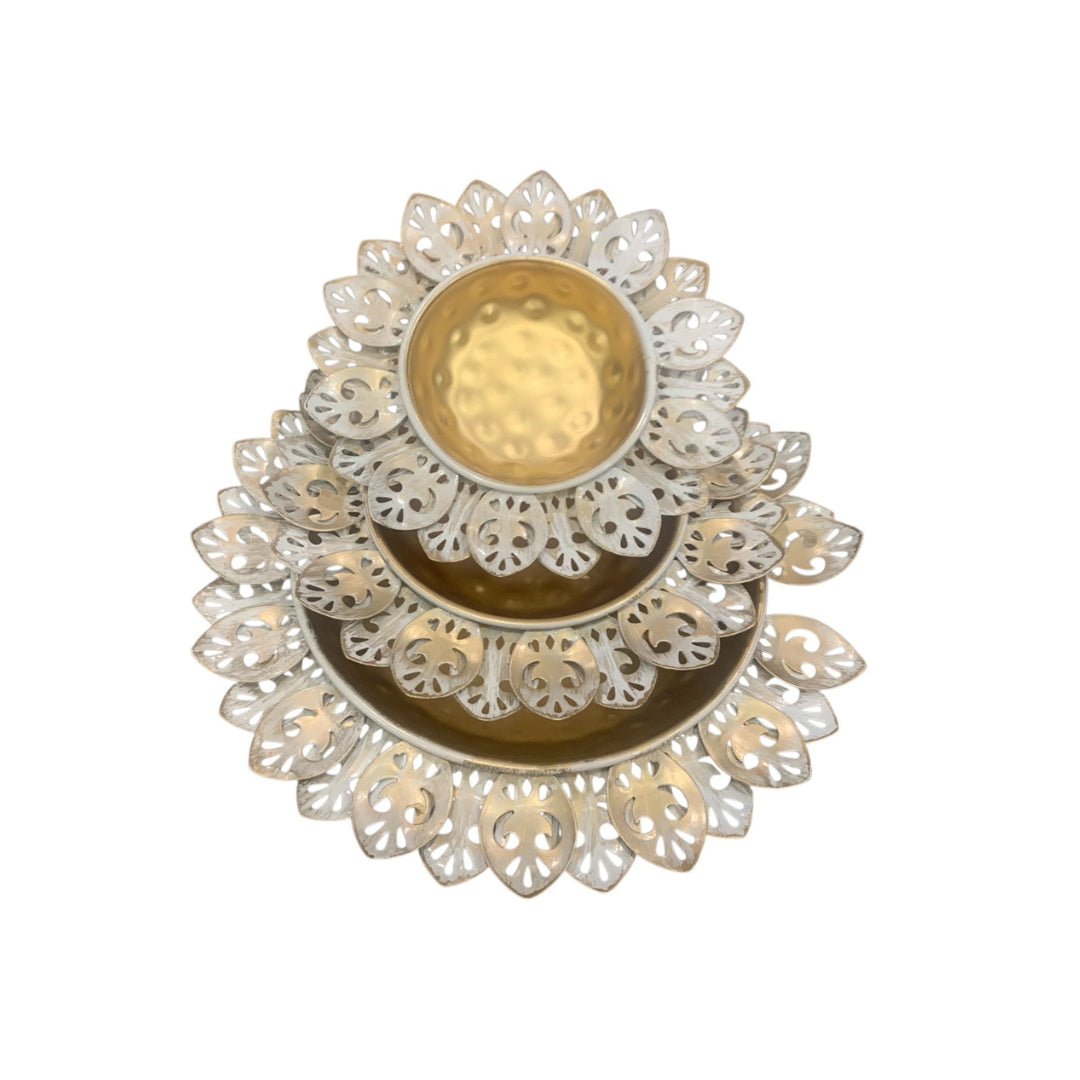 • 🌸 Set of 3 decorative thalis with lotus cutwork design