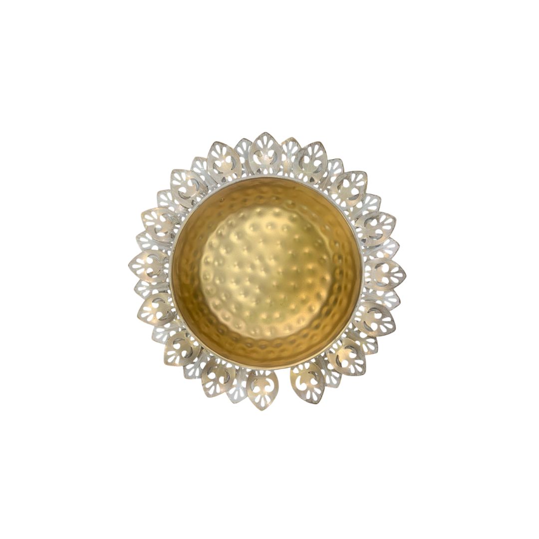 The premium golden finish adds a royal touch, while the durable metal ensures long-lasting use. These thalis can be used for placing diyas, tealight candles, pooja items, or even as festive centerpieces.