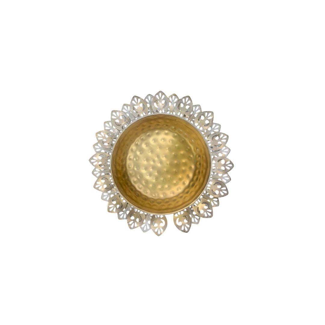Bring home elegance and tradition with this Golden Lotus Cutwork Decorative Thali Set. Designed with intricate lotus-inspired cutwork, this thali set comes in a set of 3 different sizes, perfect for pooja rituals, festive décor, or gifting.