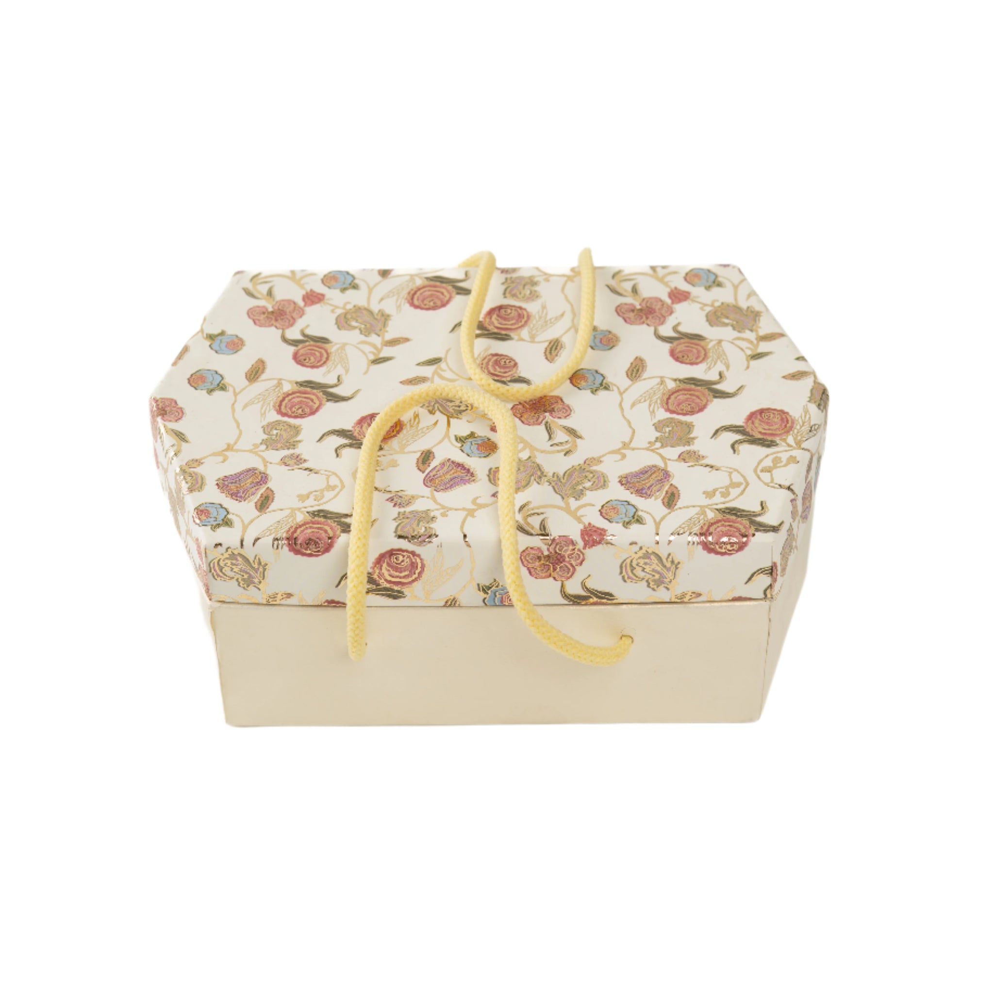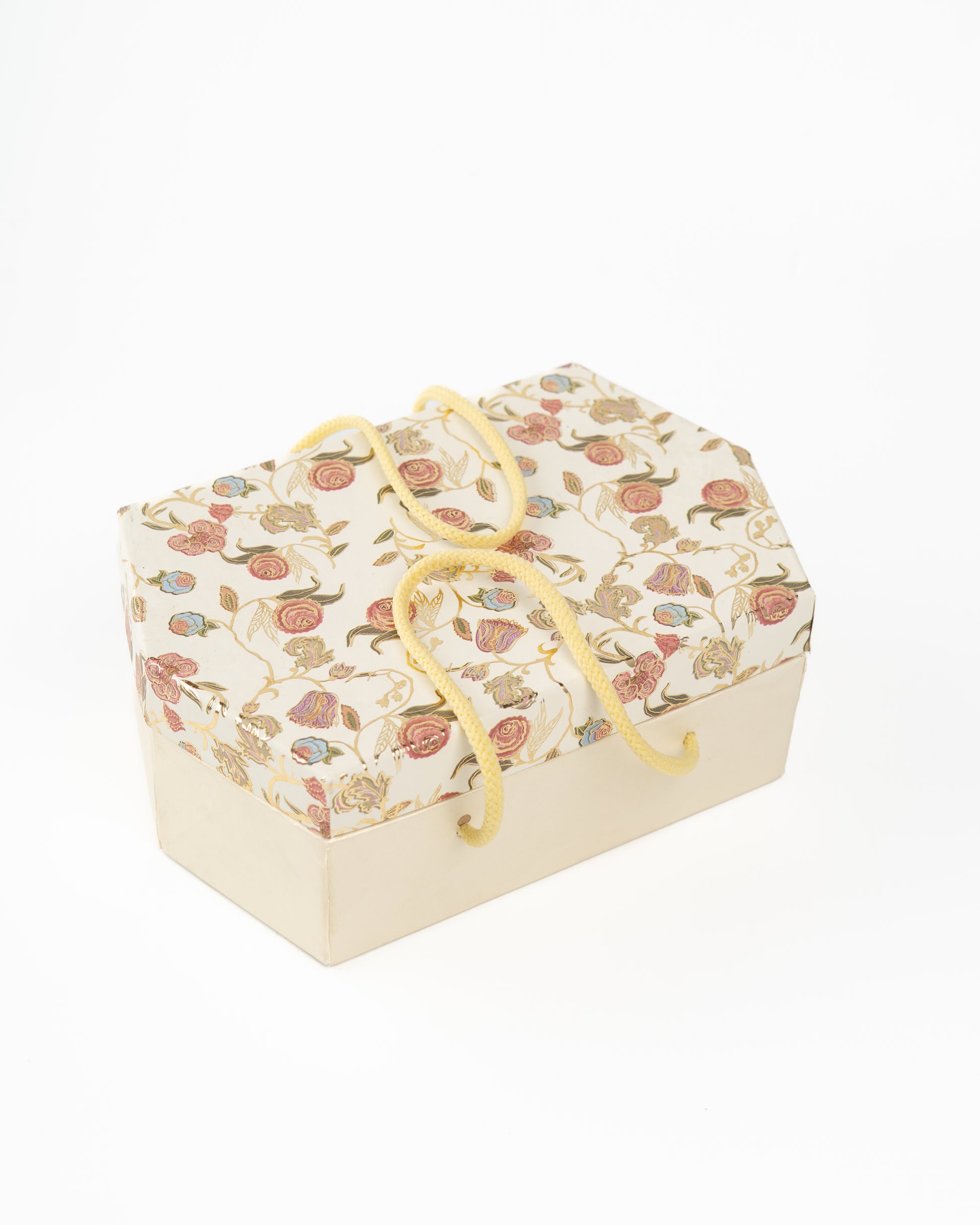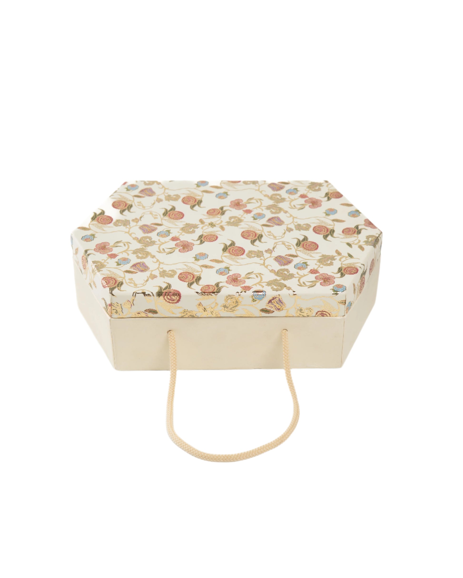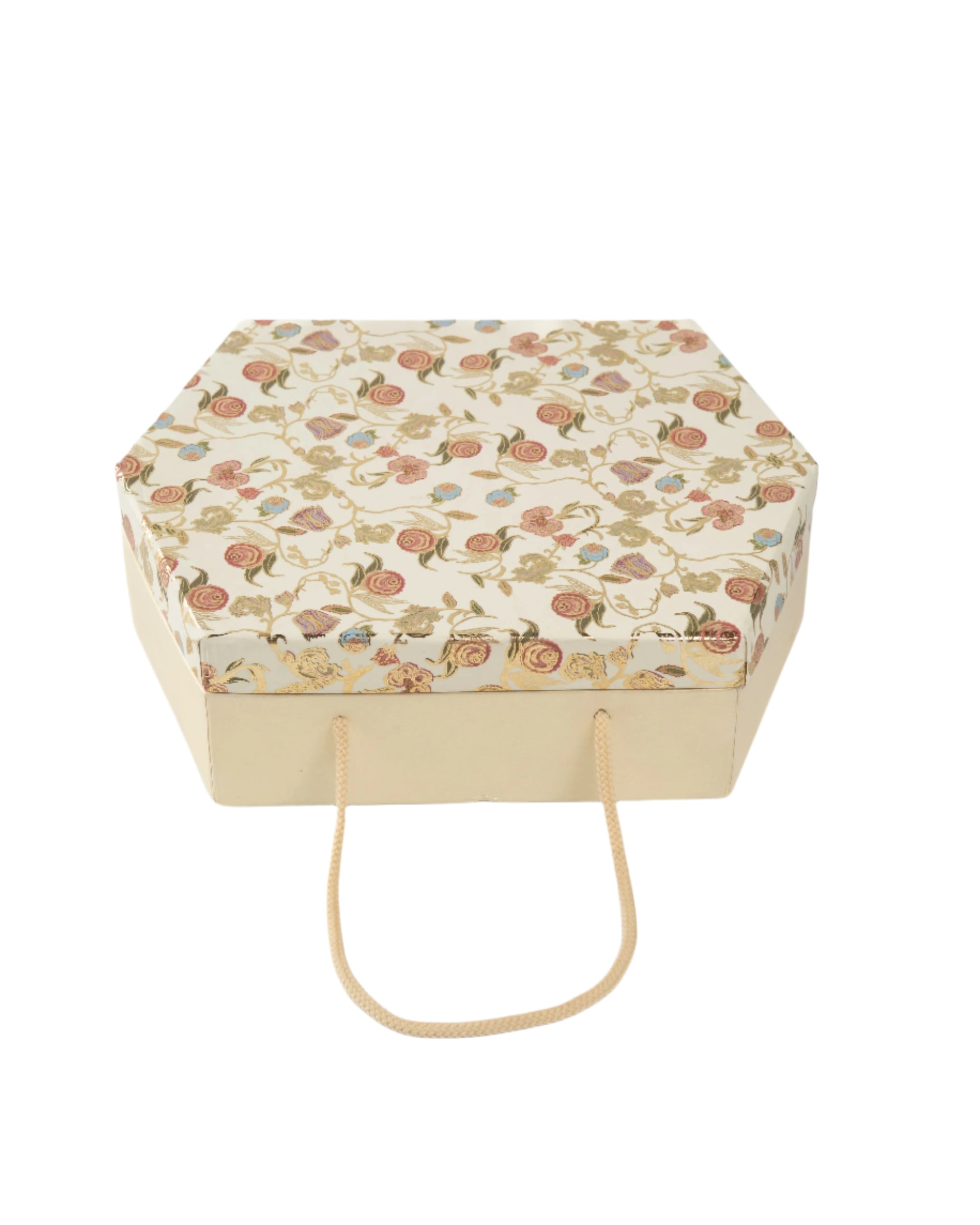 Premium Design: Octagonal rigid box with elegant floral gold-foil patterns and a sturdy rope handle.