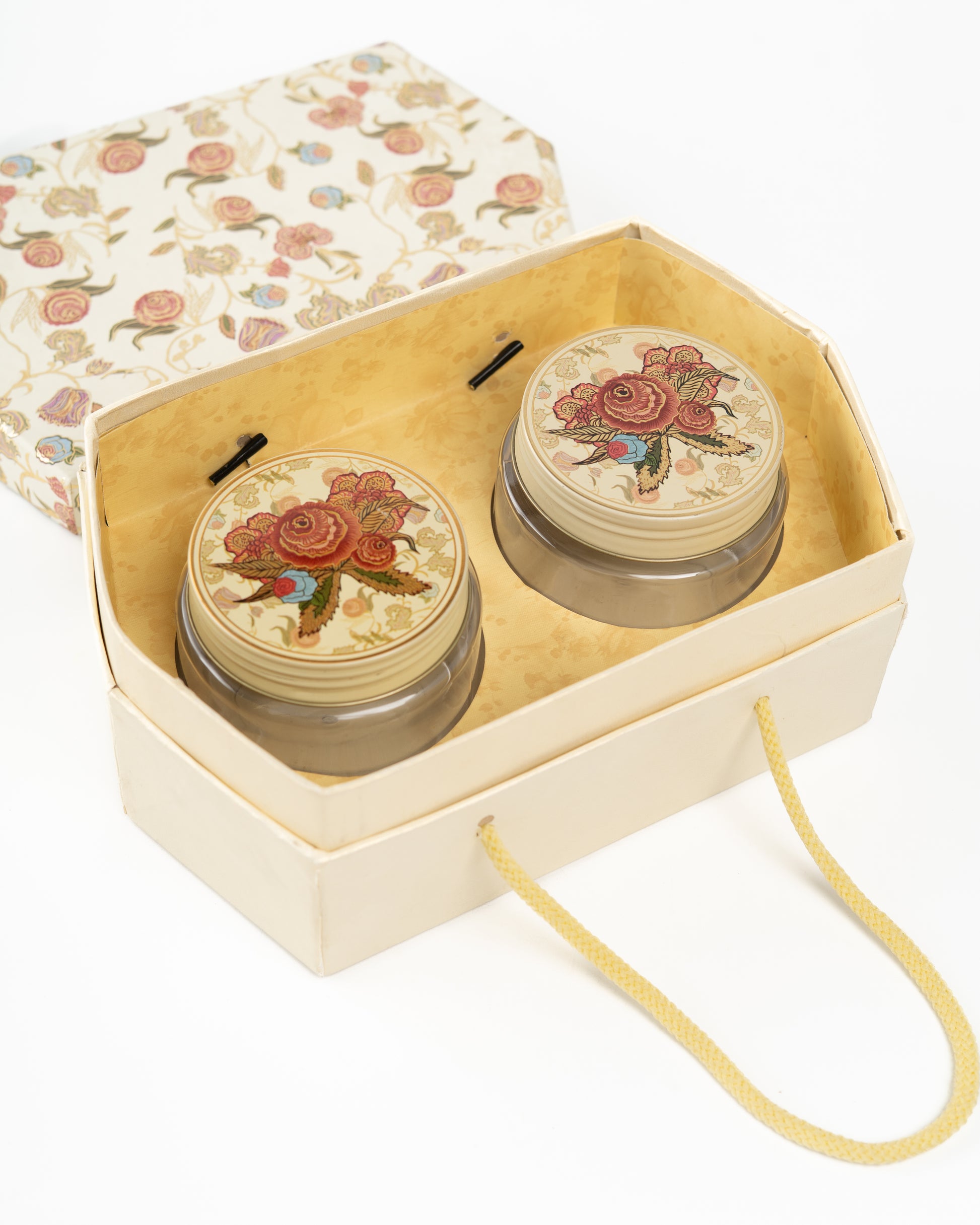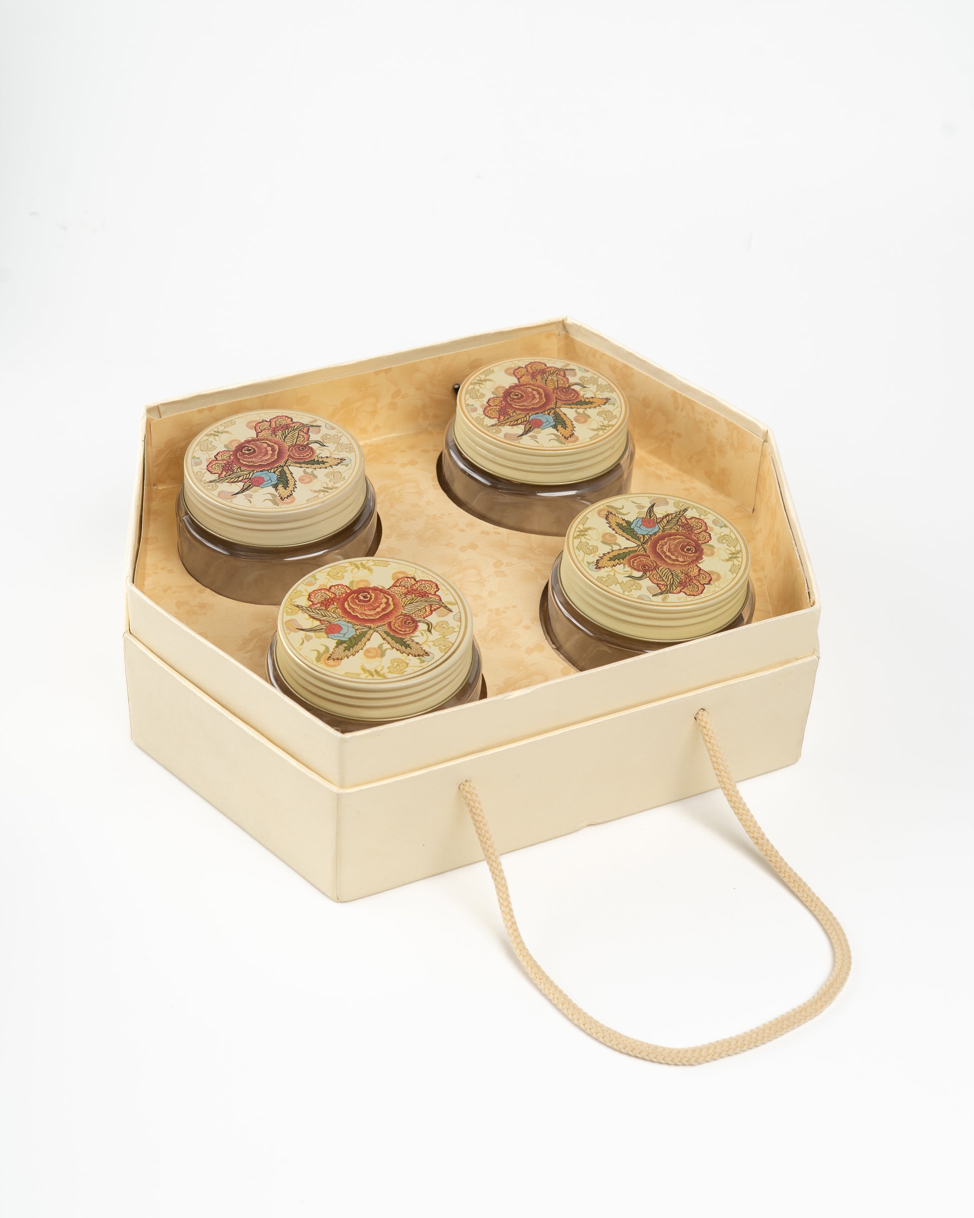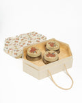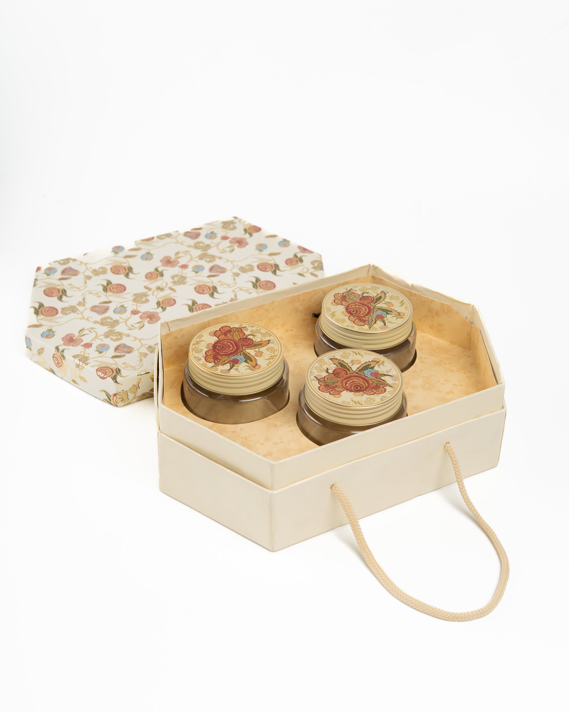 Celebrate traditions or elevate your gifting game with our Floral Hexagon Jar Hamper Box. Each box comes with beautifully designed glass jars featuring intricate floral tin lids, encased in a luxurious floral-patterned box. Available in 2, 3, or 4-jar configurations, these versatile boxes are perfect for dry fruits, sweets, spices, or festive treats.