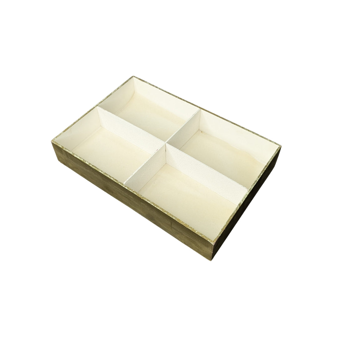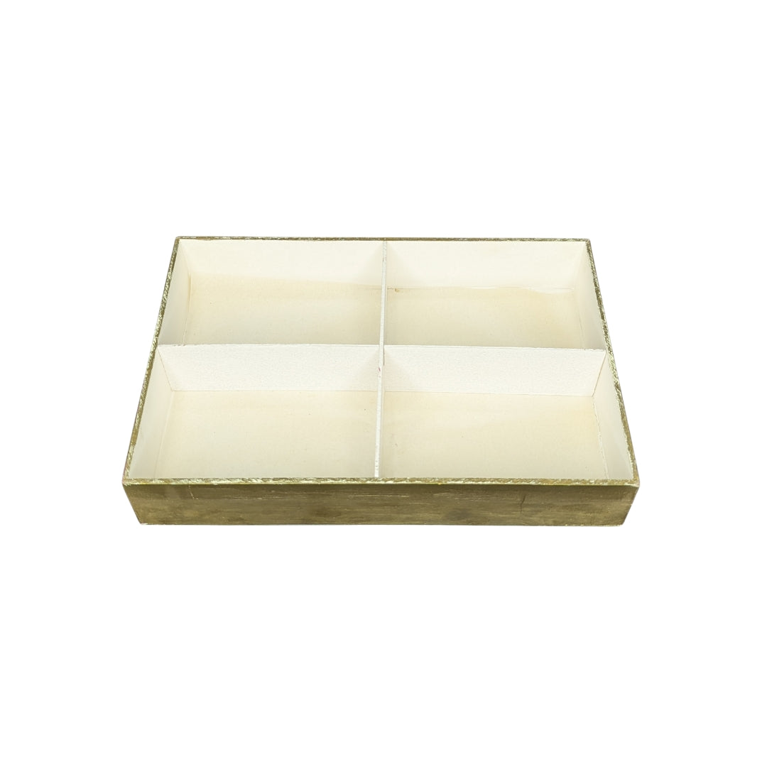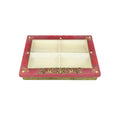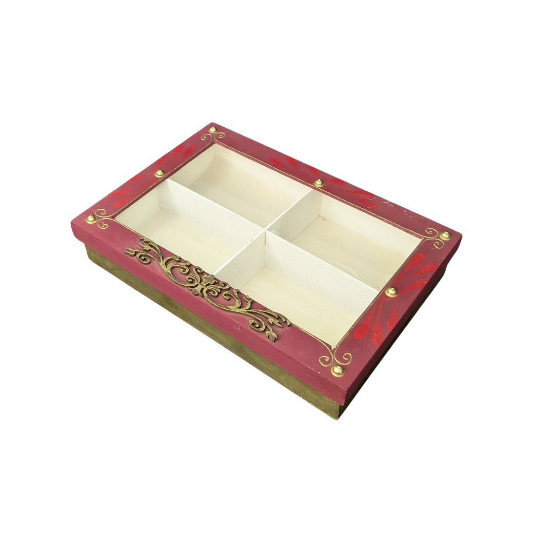 Add elegance and organization to your gifting or home storage with this Four Partition Box with Ornamental Red & Gold Design. Beautifully designed with a red and gold ornamental frame, this box features a transparent top lid that allows clear visibility of the items inside. The interior is divided into four equal sections, making it ideal for dry fruits, sweets, chocolates, jewelry, festive gifts, or premium packaging.
