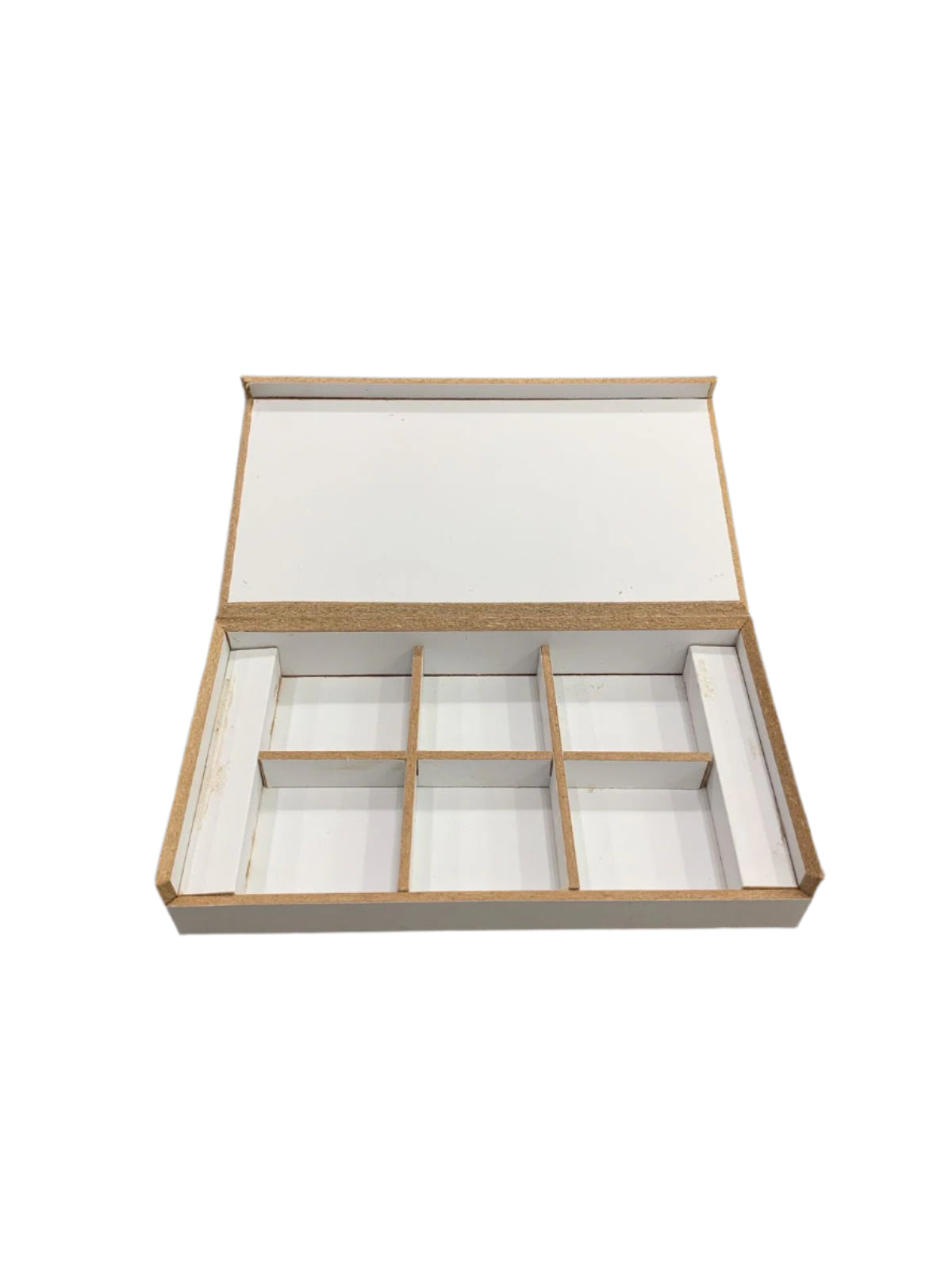 This MDF Wooden White Color Box With Partition is the perfect way to show your appreciation and make a lasting gift. Lightweight and reusable, it's a sustainable and eco-friendly way to make a statement—and it's surprisingly affordable! Whether it's for dry fruits or chocolates, this box will have your recipient feeling the love (at an unbeatable price!).