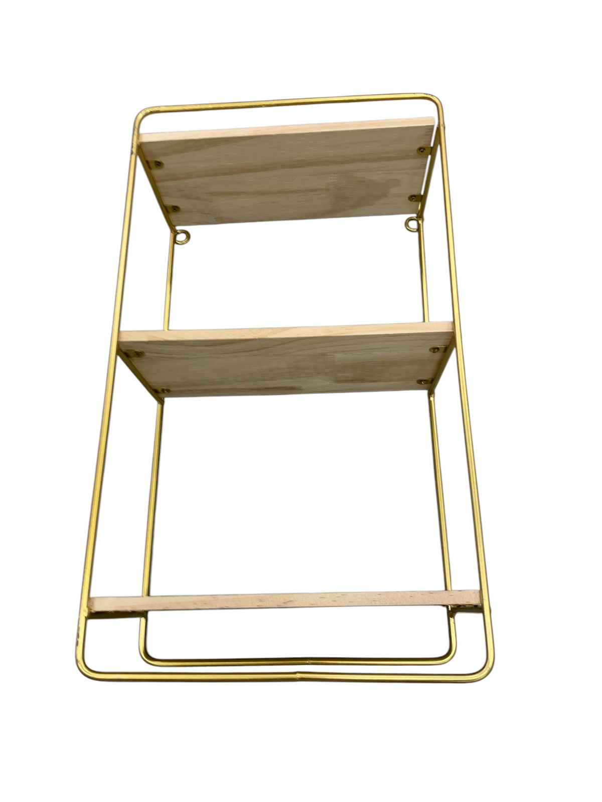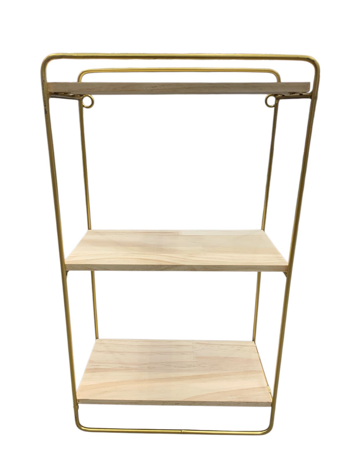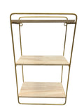 Vertical Gold Metal Wall Shelf with 3 Wooden Tiers