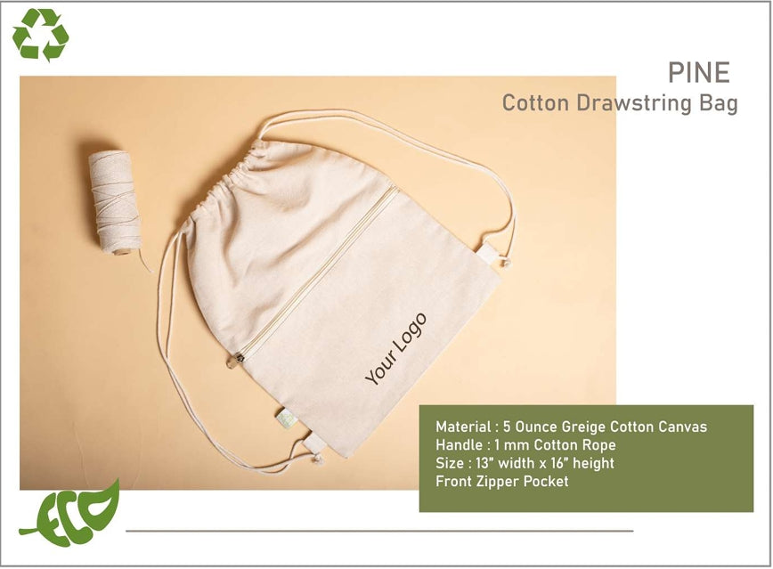 The PINE Eco-Friendly Cotton Drawstring Bag  is designed for those who value sustainability, convenience, and style in one package. Made from premium 5 oz greige cotton canvas, it’s lightweight yet durable enough for daily adventures. The 1 mm cotton rope straps make it comfortable to carry, while the front zipper pocket provides quick access to essentials like keys, wallets, or phones. Perfect for gyms, schools, travel, or eco-conscious giveaways, this bag is the smarter alternative to synthetic drawstring sacks.