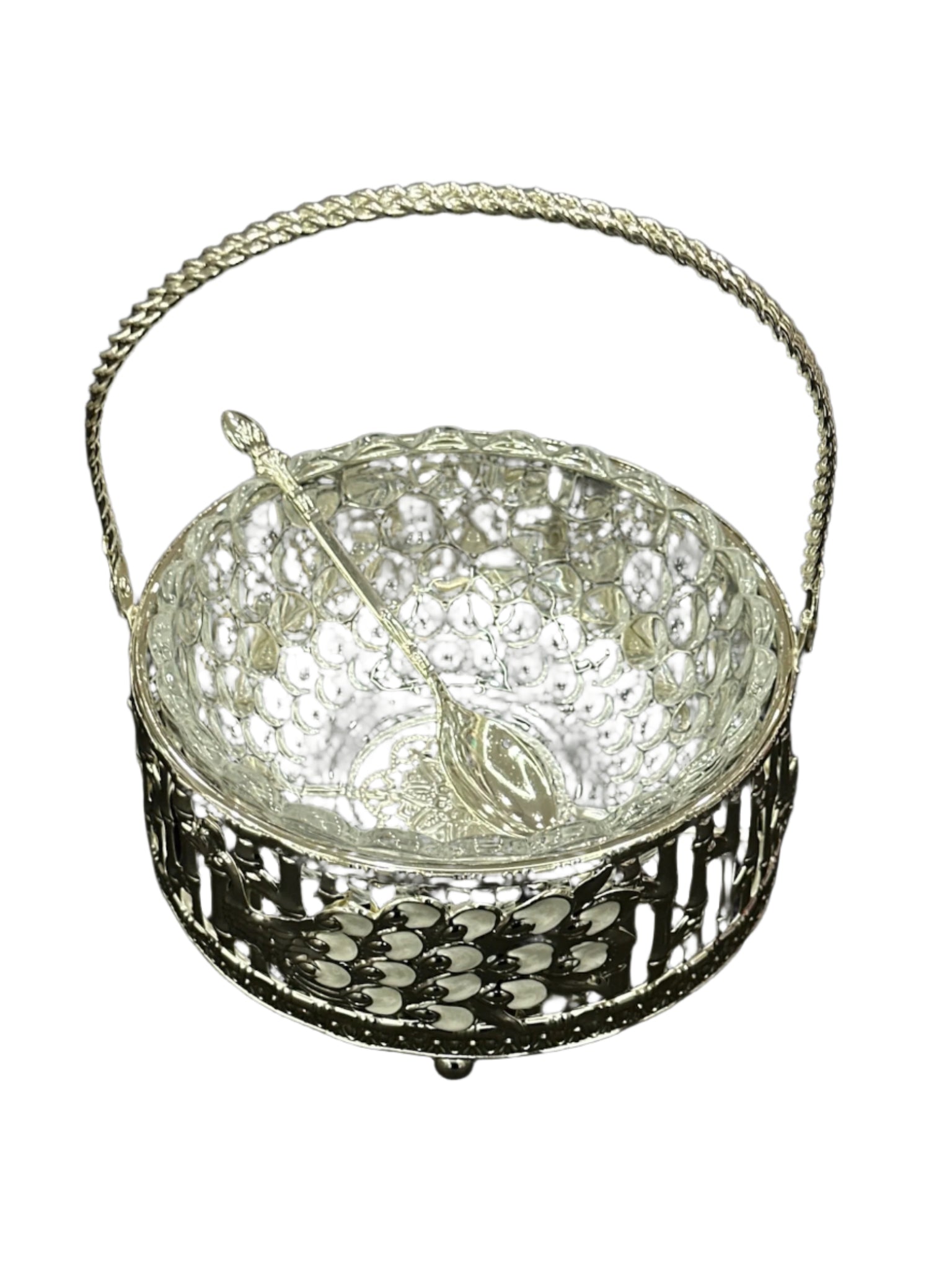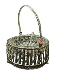 Vintage Glory Glass Basket with Intricate Silver Detailing