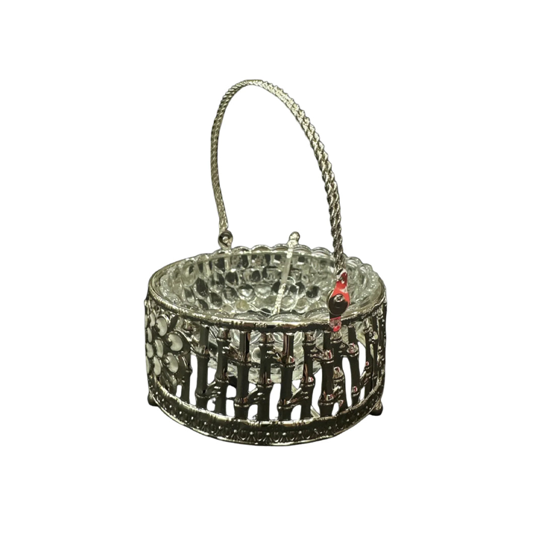 Durable Construction: The sturdy crystal base ensures the basket is both practical and long-lasting, while the braided silver handle offers easy portability.