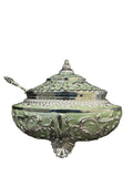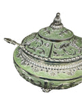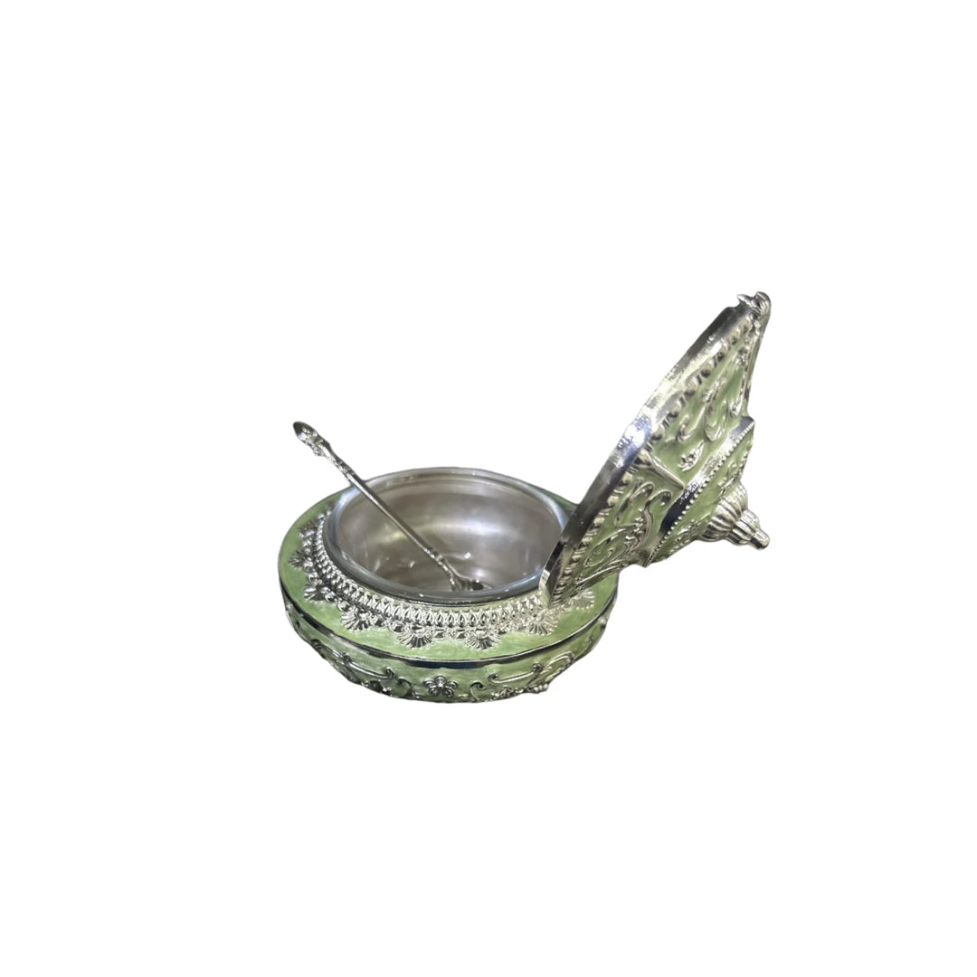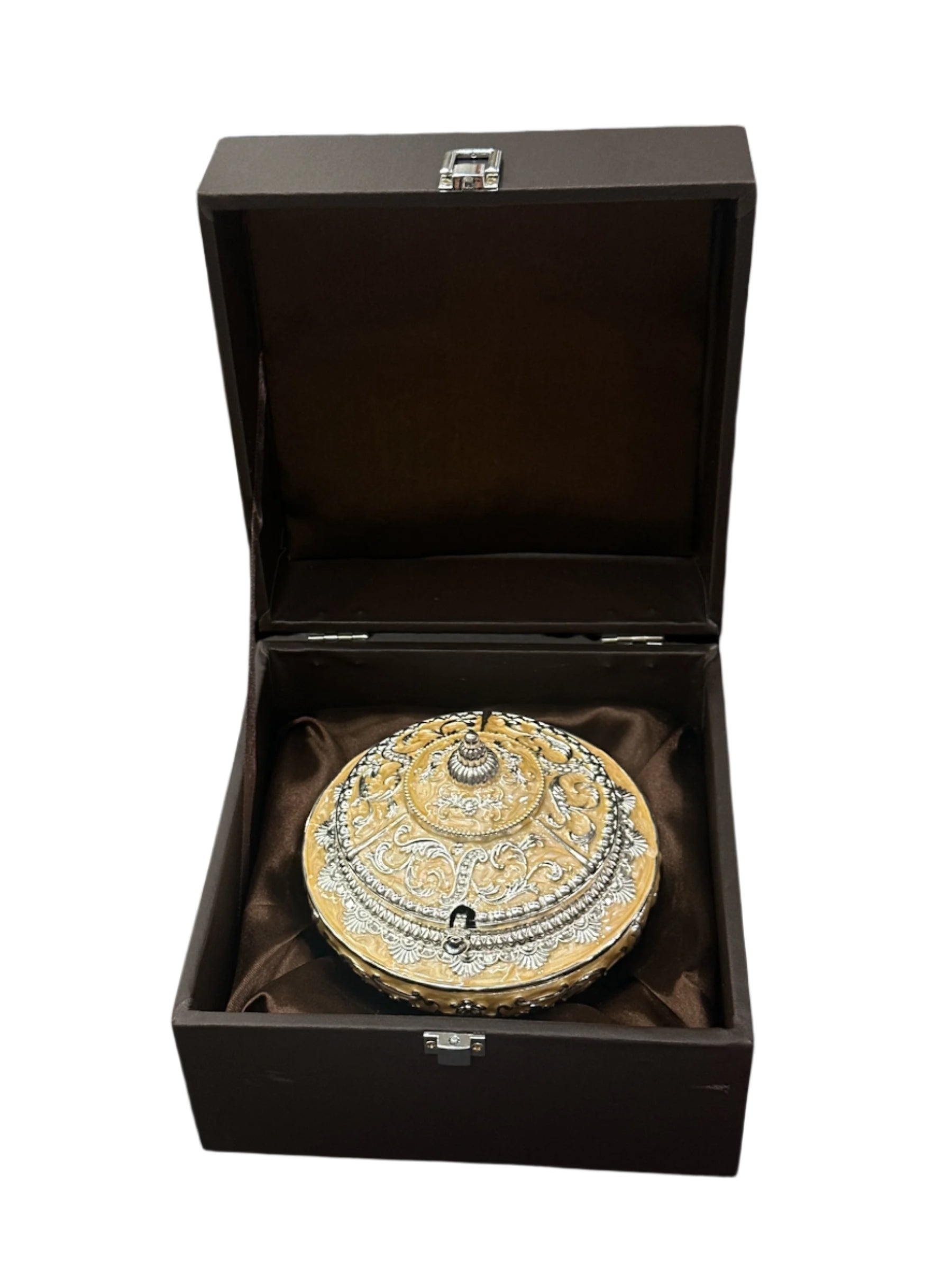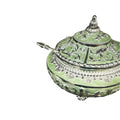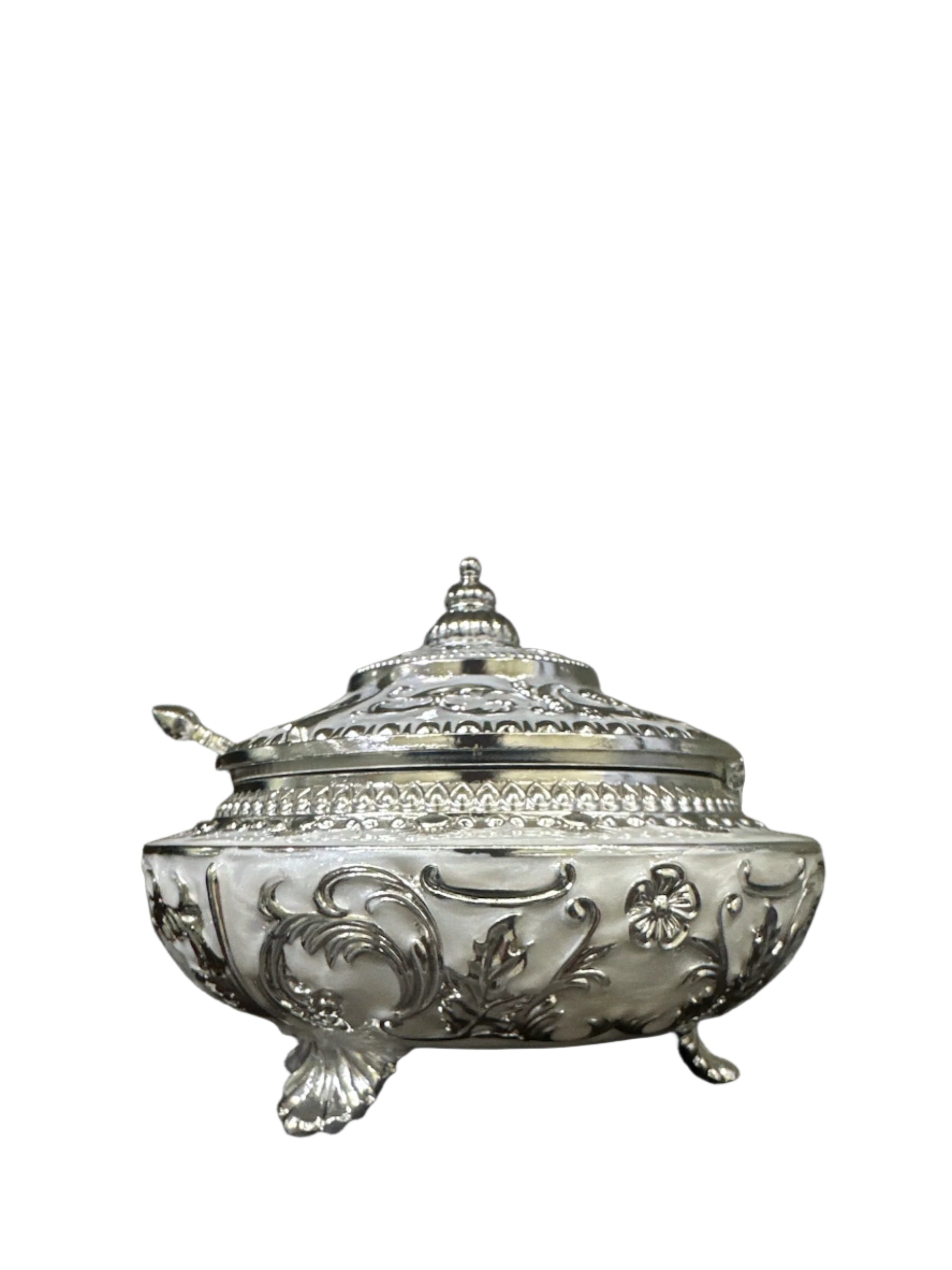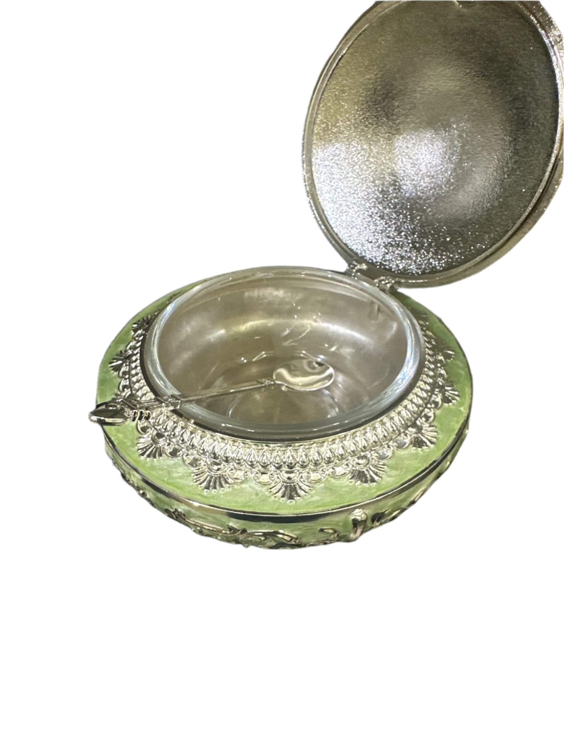 Each piece is complemented by a functional, ornate spoon and a secure, tightly-fitting lid, ensuring your treasured items remain safe while displayed in style. This box is also packaged in a deluxe brown gift box, making it the perfect gift for weddings, anniversaries, or housewarmings.
