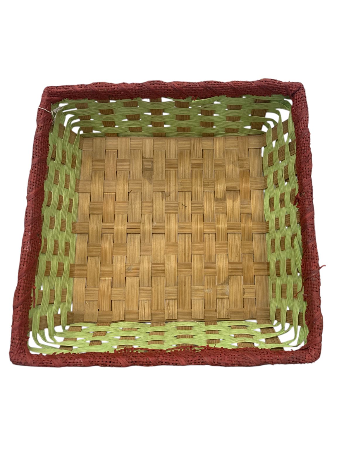 Paper Weaved Green & Red Square Utility Basket – Handcrafted Storage Organizer