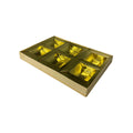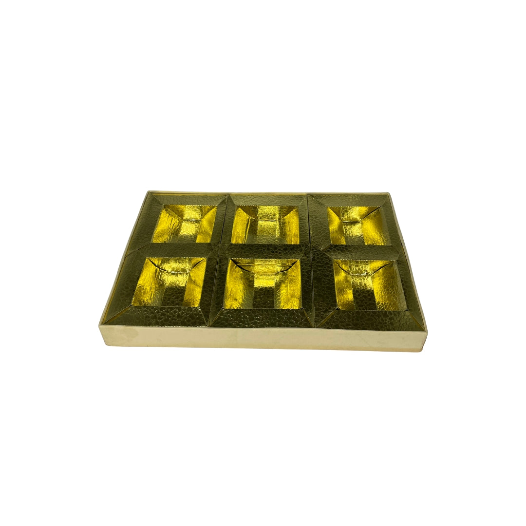 Inside, the box includes a 6-compartment golden tray, perfect for presenting dry fruits, chocolates, sweets, or assorted gifting items in a neat and luxurious manner. Ideal for weddings, festive occasions, return favors, corporate gifting, and premium hamper packaging, this box is designed to leave a lasting impression.