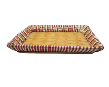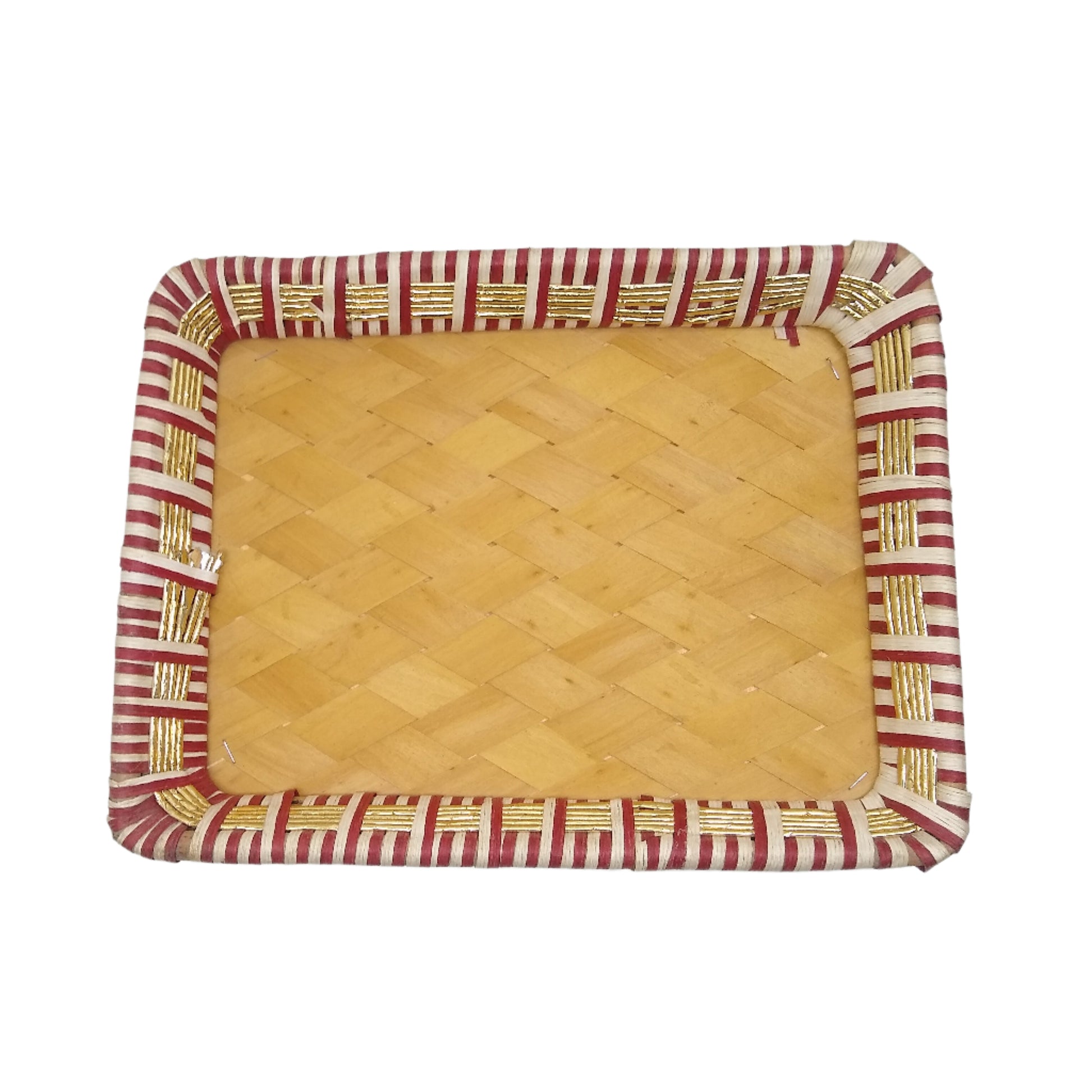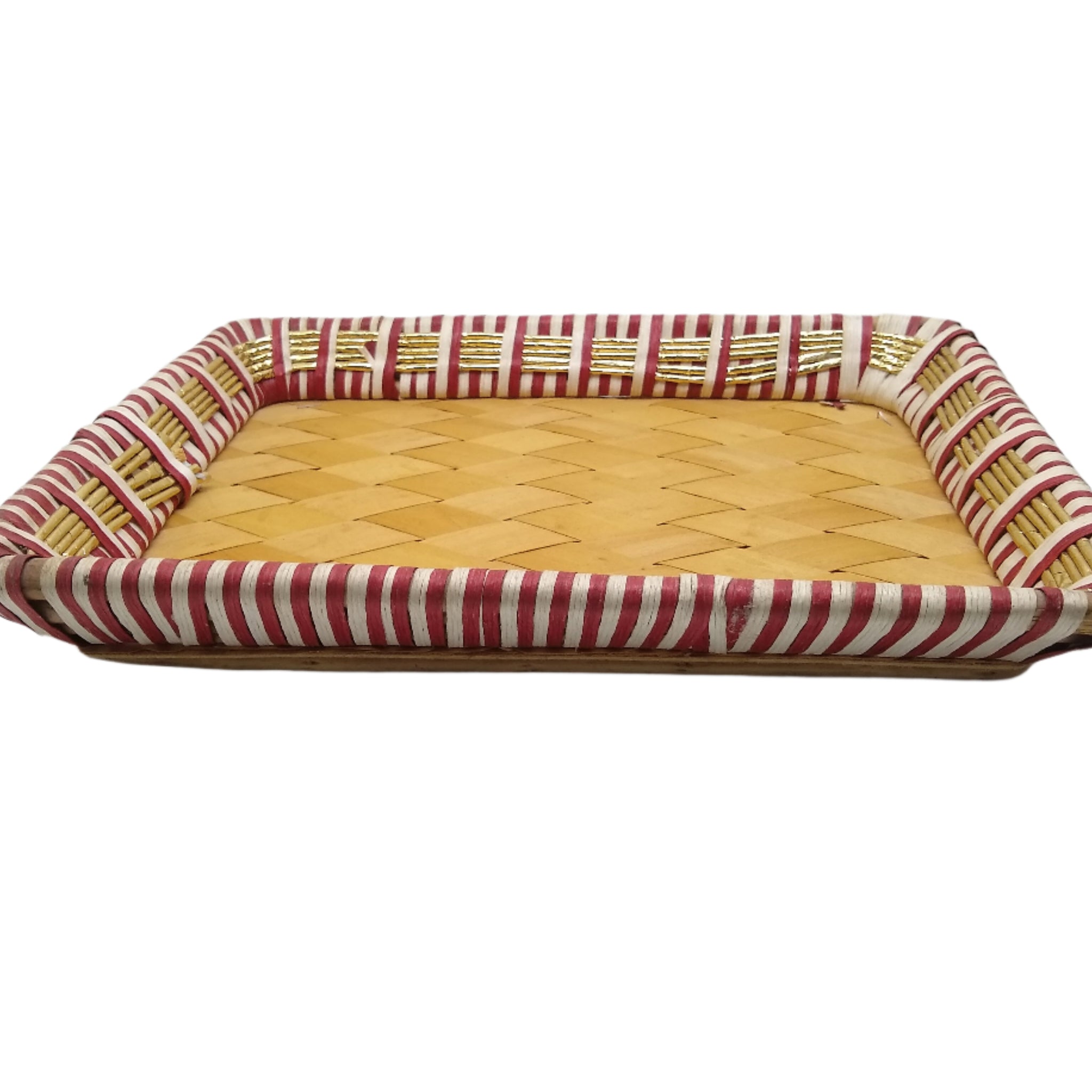 Bring home an eco-conscious touch of tradition with this Traditional Bamboo Basket Tray, beautifully handwoven from natural bamboo and accented with festive red and gold detailing. Its rectangular design and sturdy build make it a versatile piece for serving, organizing, or decorating. Whether placed in your kitchen, dining area, or workspace, this basket tray effortlessly combines rustic charm with everyday practicality.