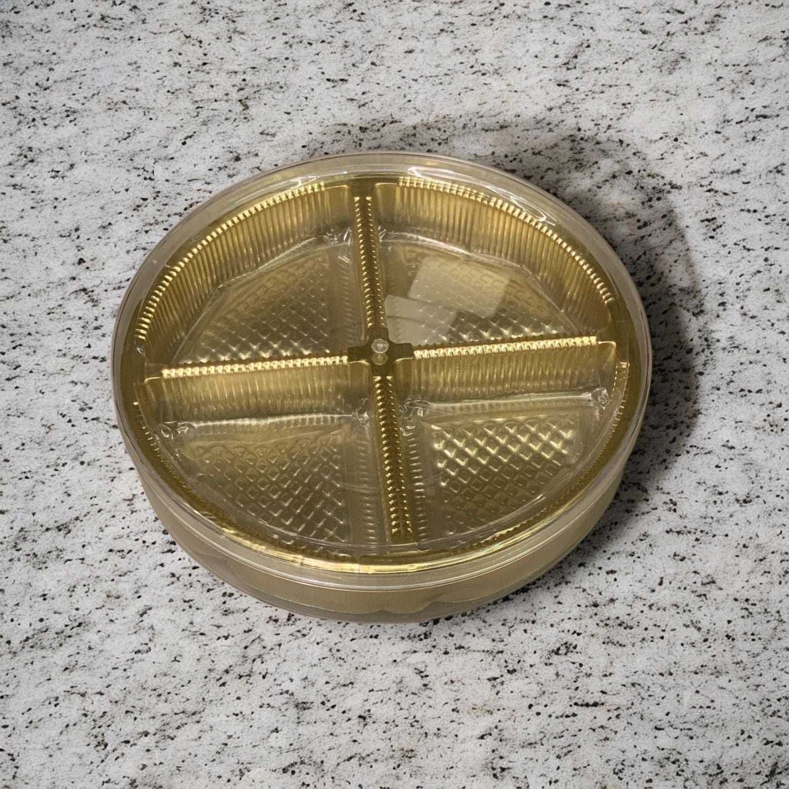 Transparent Round Super Crystal Box With Four Golden Sleeve Cavities: 1Nos