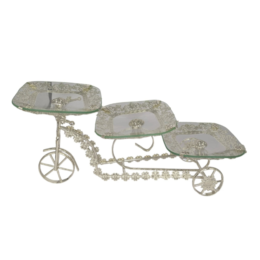 This Three Tier Floral Wheel Tricycle Dessert Stand combines elegance and creativity, making it the perfect centerpiece for parties, weddings, or home décor. With its charming bicycle-inspired design and delicately crafted glass trays, this decorative piece is both functional and eye-catching.