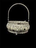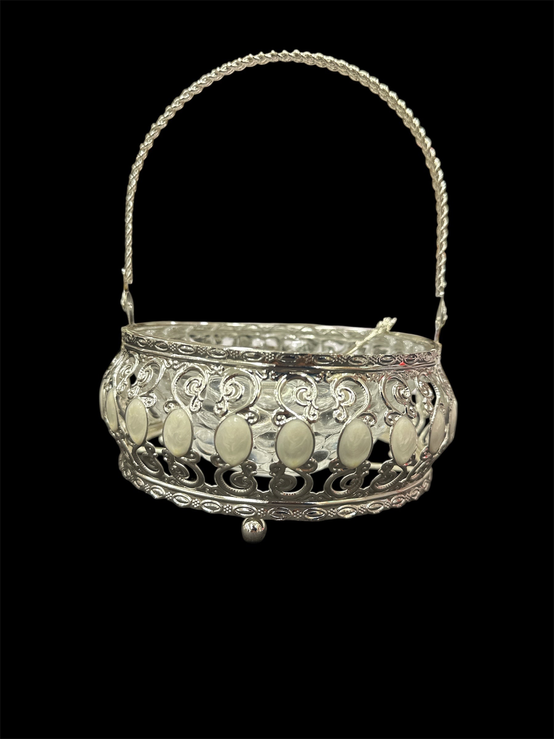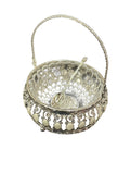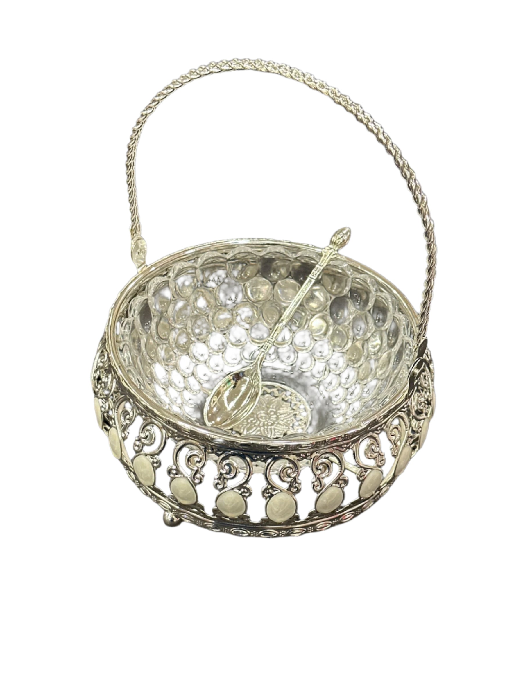 Ornate Silver & Glass Serving Basket with Spoon