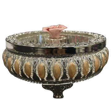 Elegant Design: The box features a stunning silver-plated trim adorned with floral and beaded detailing, paired with a delicate pink rose accent on the lid, adding a soft, romantic touch.
