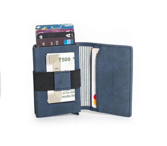Designed for the modern minimalist, the UrbanEdge™ Slim Wallet combines sleek aesthetics with practical everyday utility. Crafted in premium blue leather with a unique elastic band closure, this wallet keeps your essentials safe and stylish—whether you’re at work, traveling, or enjoying a casual day out.