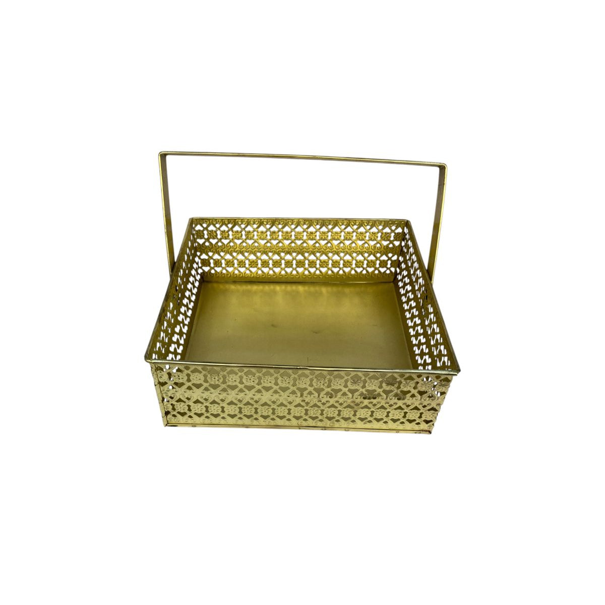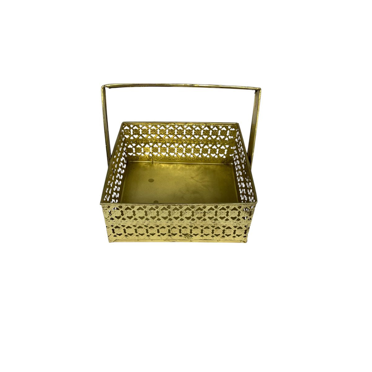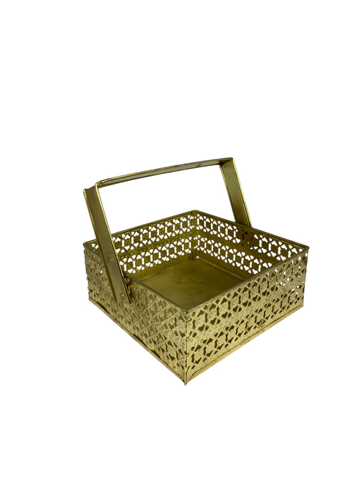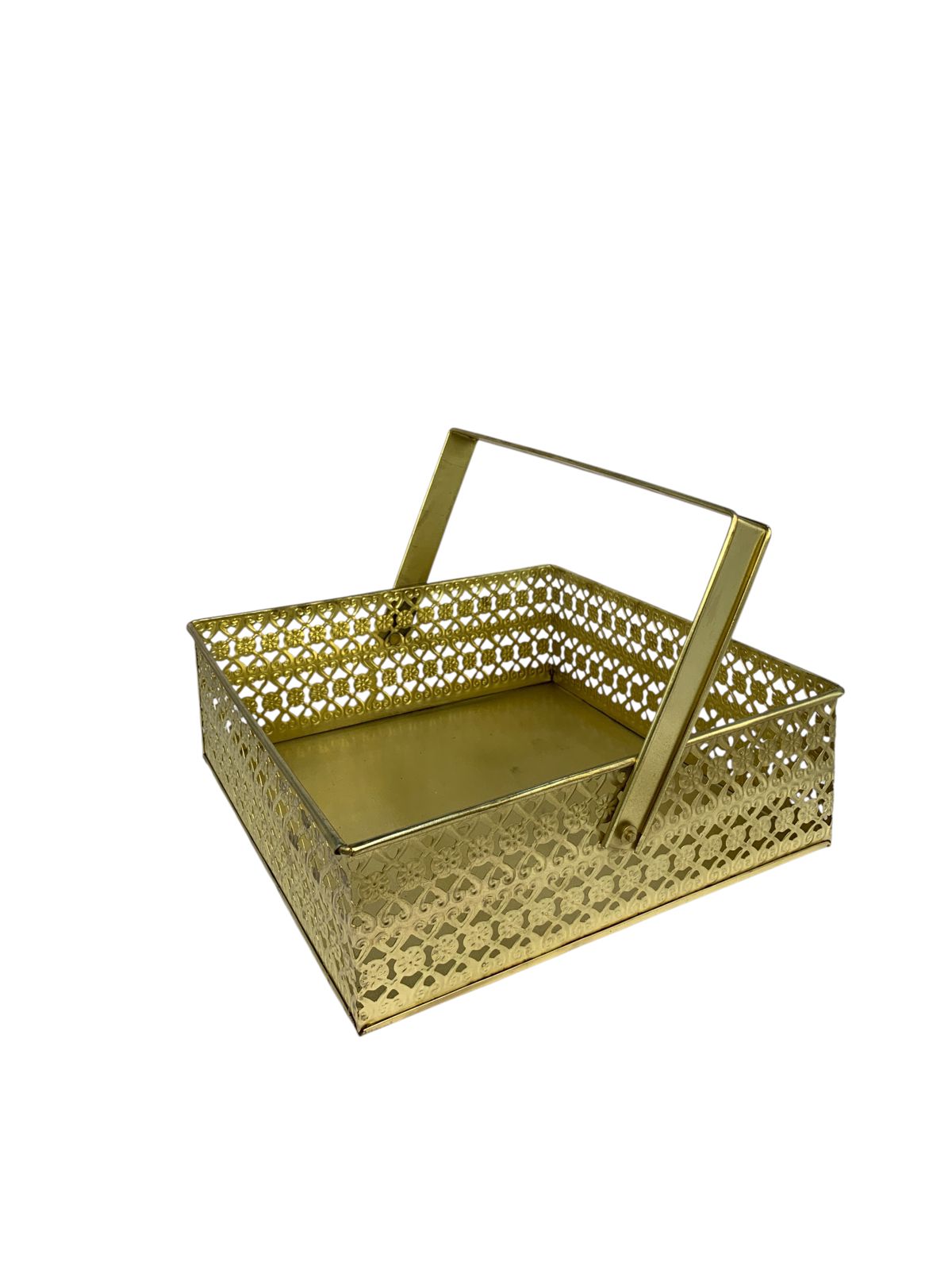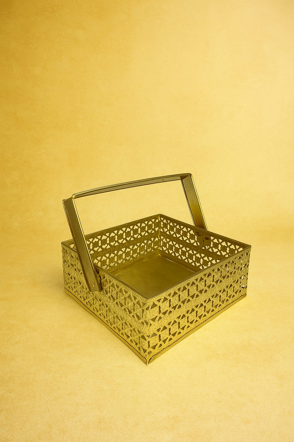 Golden Square Metal Basket with Handle – Decorative Filigree Storage Basket (Small & Large)