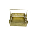 This Golden Square Metal Basket With Handle beautifully blends elegance with everyday functionality. Featuring an intricate filigree design and a luxurious gold finish, this basket instantly elevates any room with its sophisticated charm. The open-work pattern creates a light and airy look, allowing natural light to filter through and enhancing its decorative appeal.