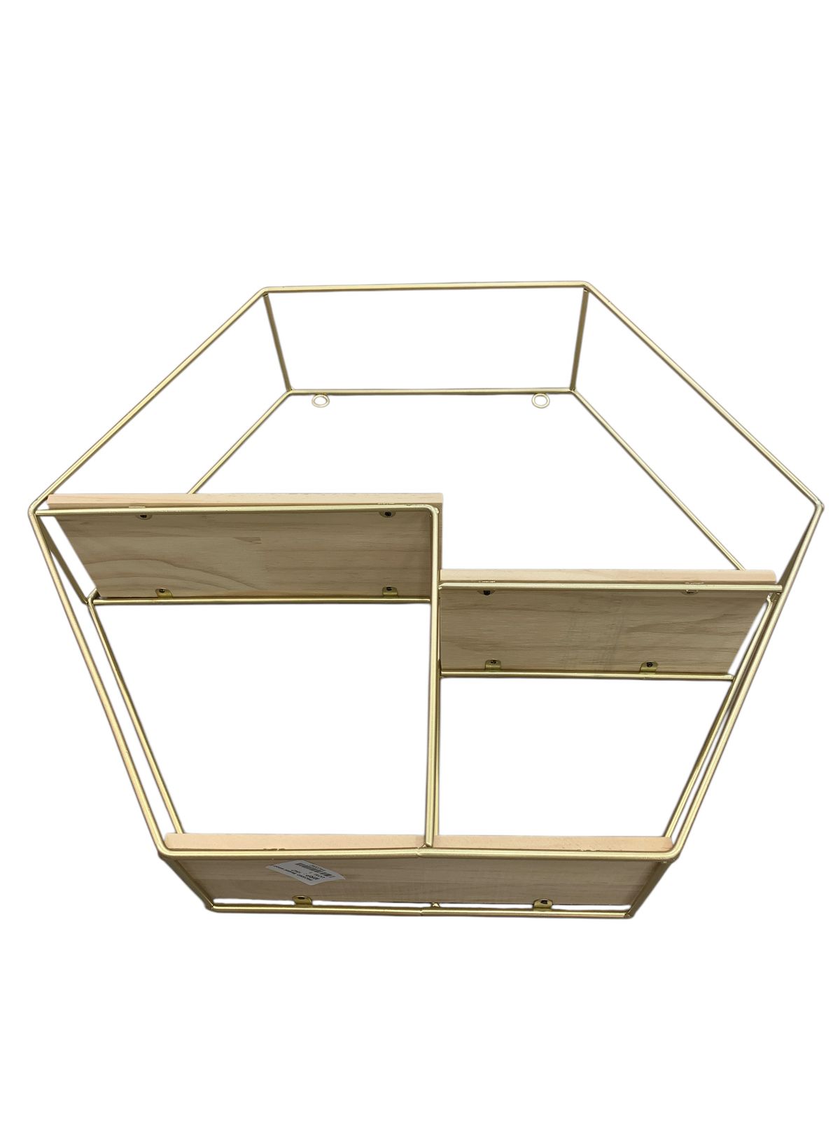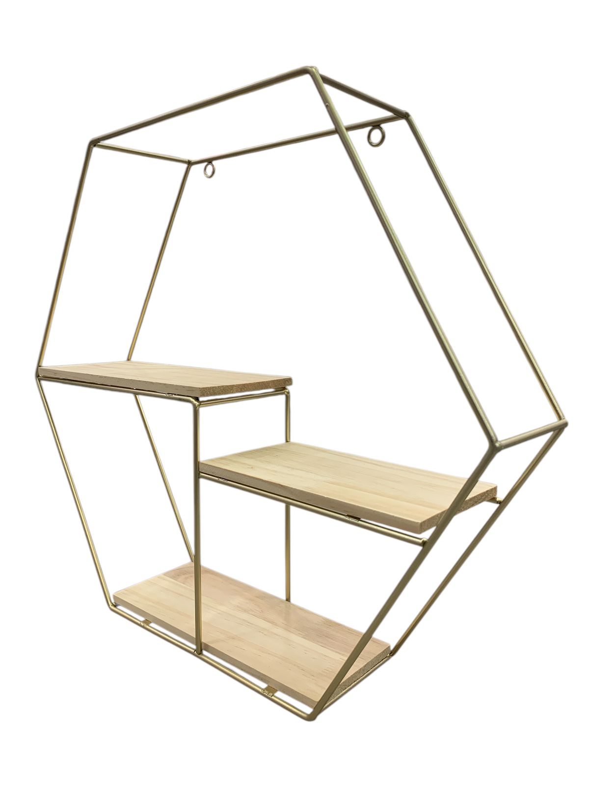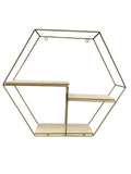 Make a bold style statement with this modern hexagon-shaped wall shelf, combining sleek golden metal framing with natural wooden tiers. Whether you're looking to display small plants, décor accents, books, or photo frames, this contemporary floating shelf adds a touch of elegance and structure to any room — be it your living room, bedroom, office, or hallway.