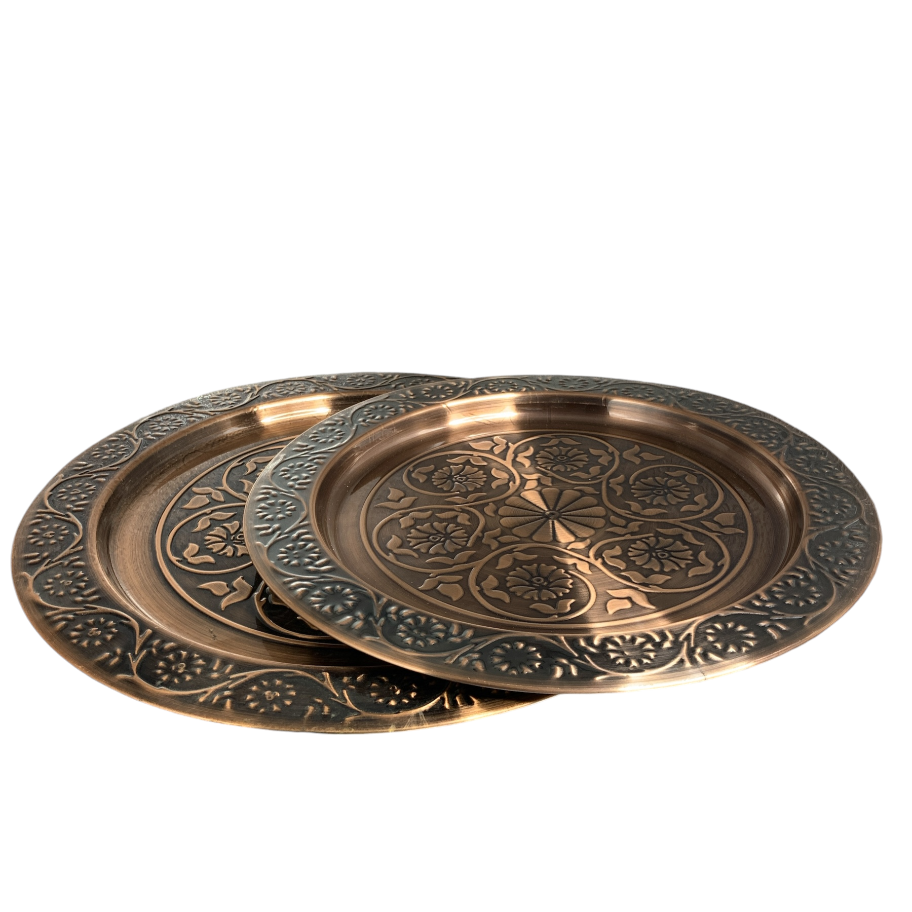 Whether you're hosting a special gathering or looking to enhance your home decor, these versatile trays are ideal for both functional use and as a beautiful centerpiece. With their refined copper-plated finish and delicate patterns, these trays make a statement in any room.
