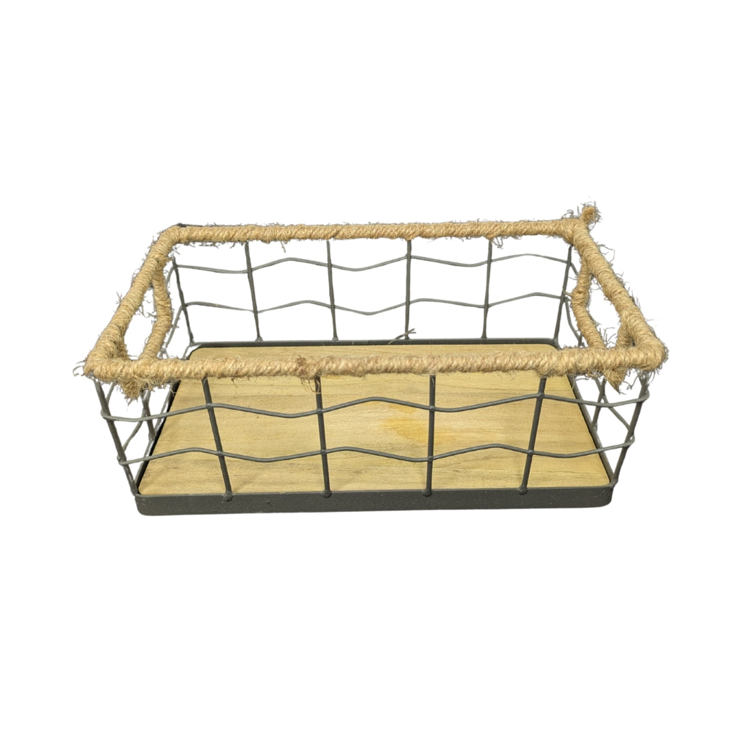 Bring both style and functionality to your home with this Farmhouse Style Metal Border Tray featuring a solid wooden base and jute-wrapped rim. Perfectly blending industrial charm with farmhouse warmth, this versatile basket is ideal for organizing, serving, or simply enhancing your home décor.