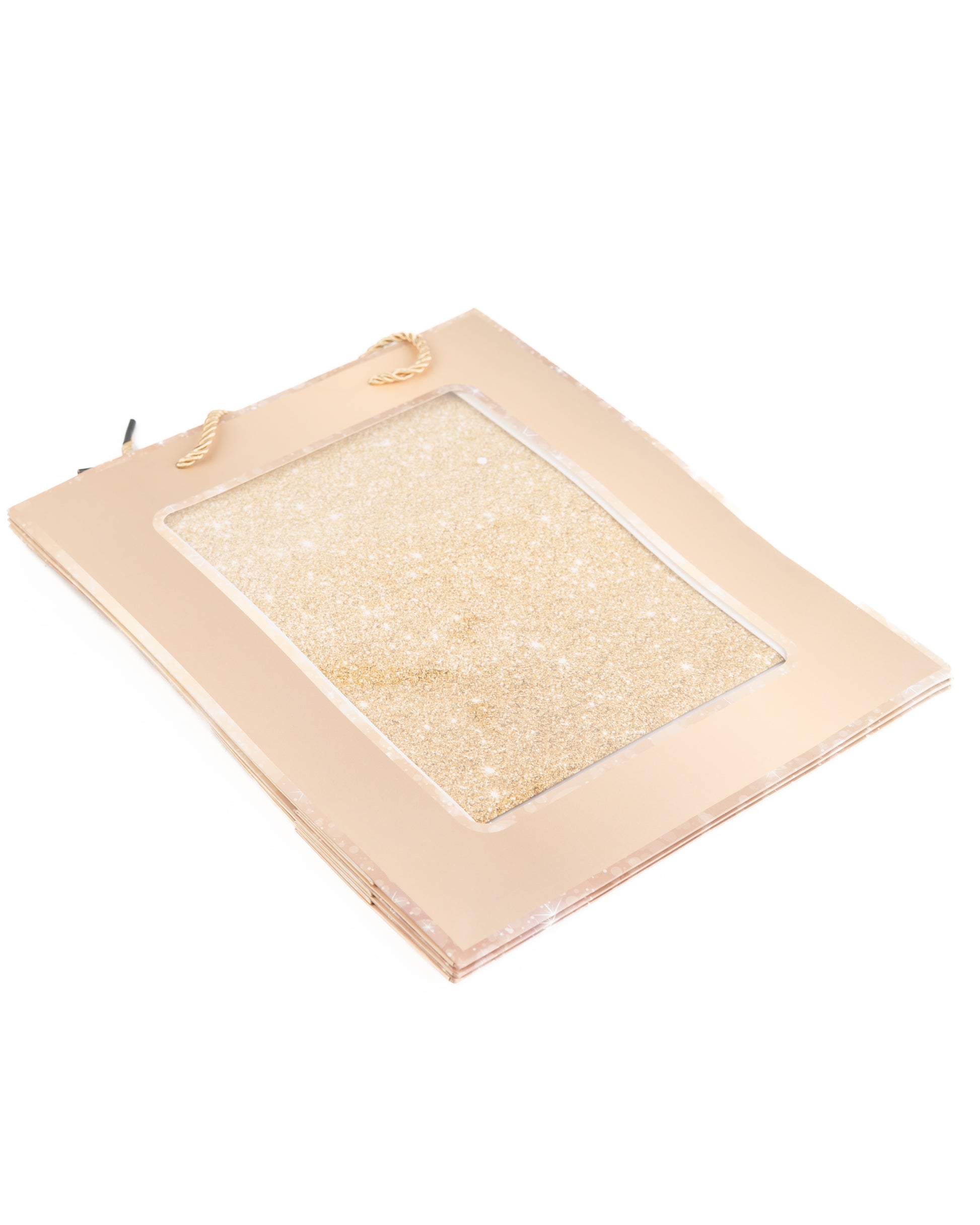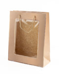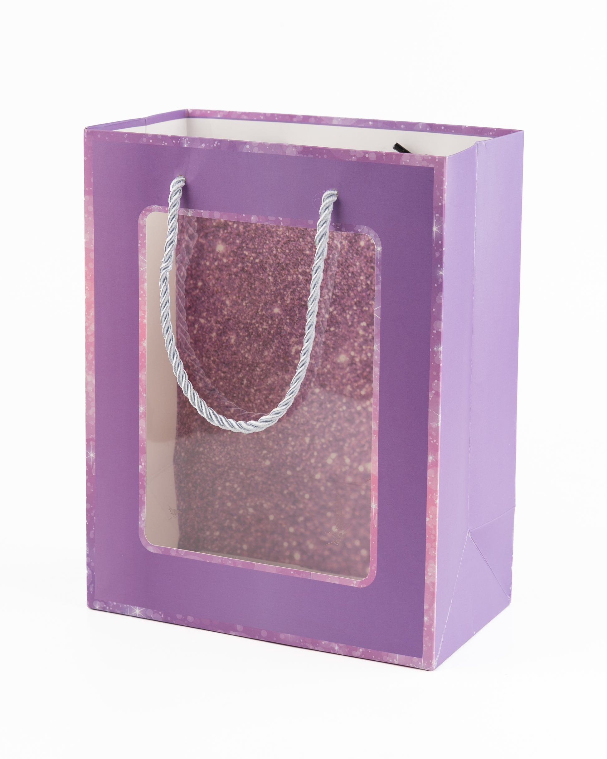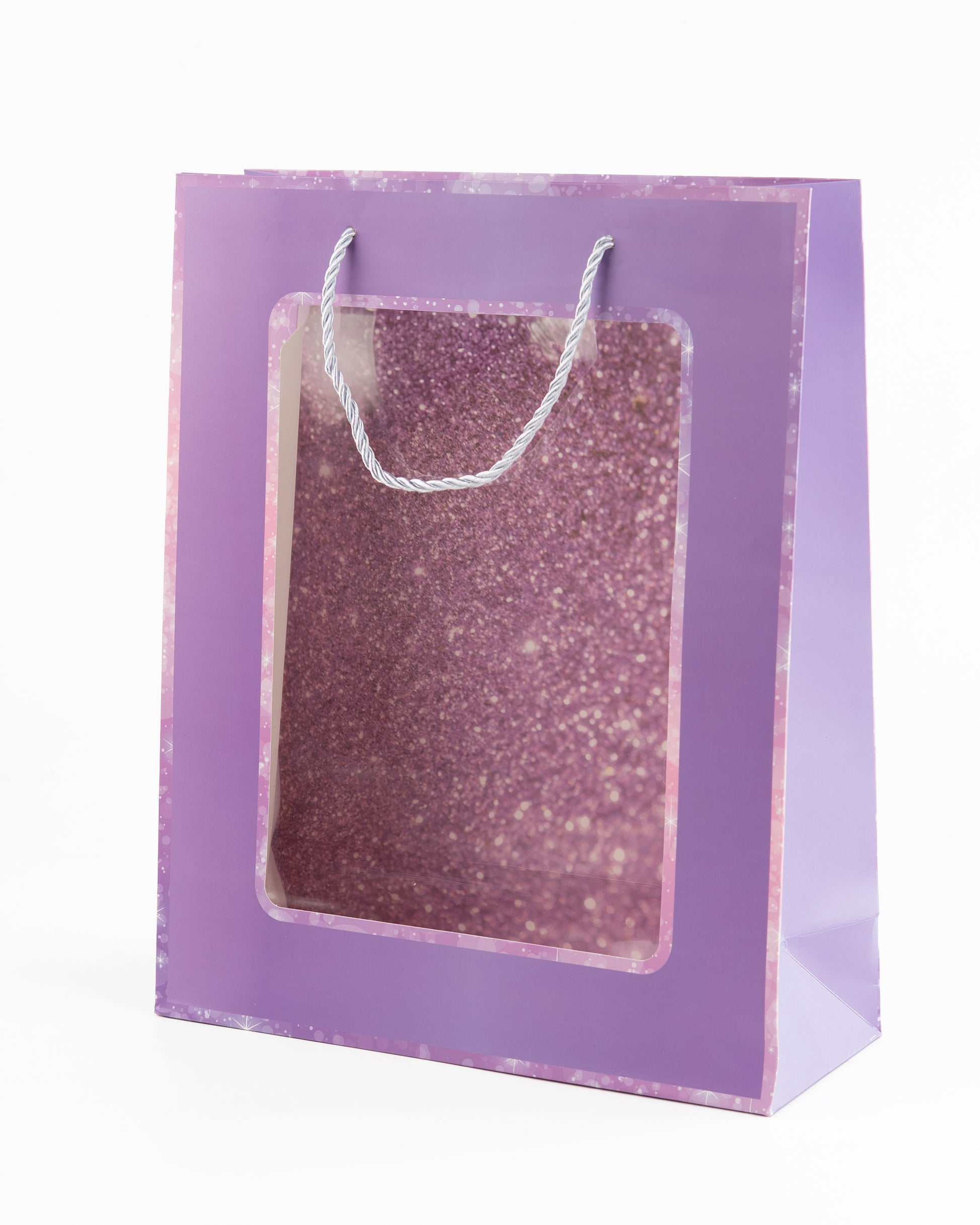 Elevate your gift-giving experience with this Assorted Colour Glitter Window Paper Bag. Perfect for any occasion, these luxurious bags are designed with a dazzling glitter finish that catches the light and adds a touch of glamour.