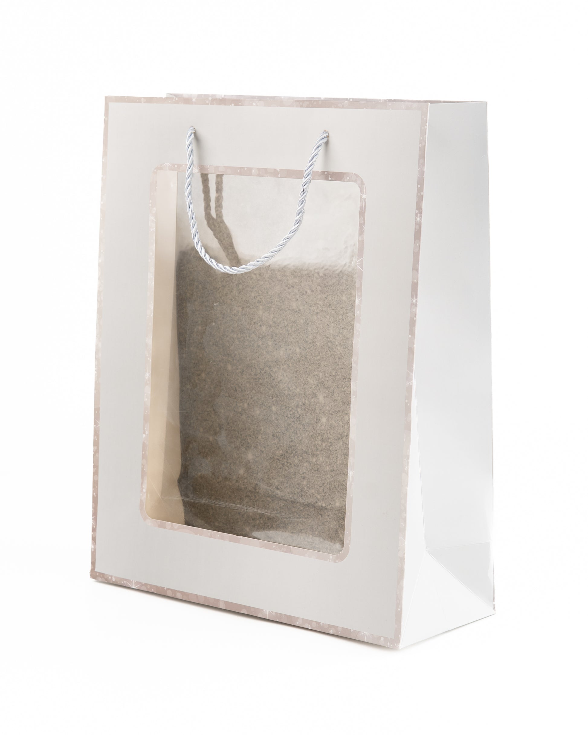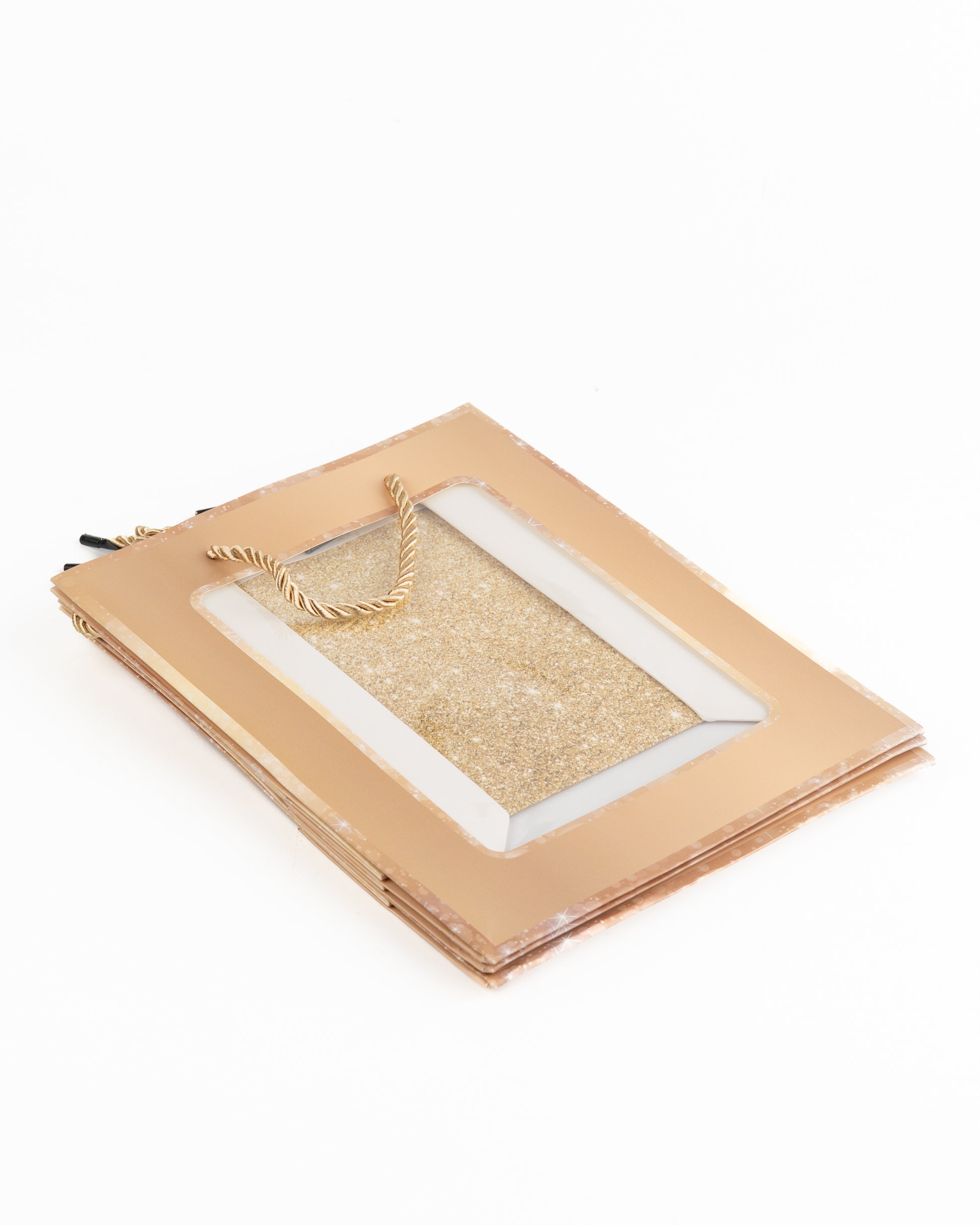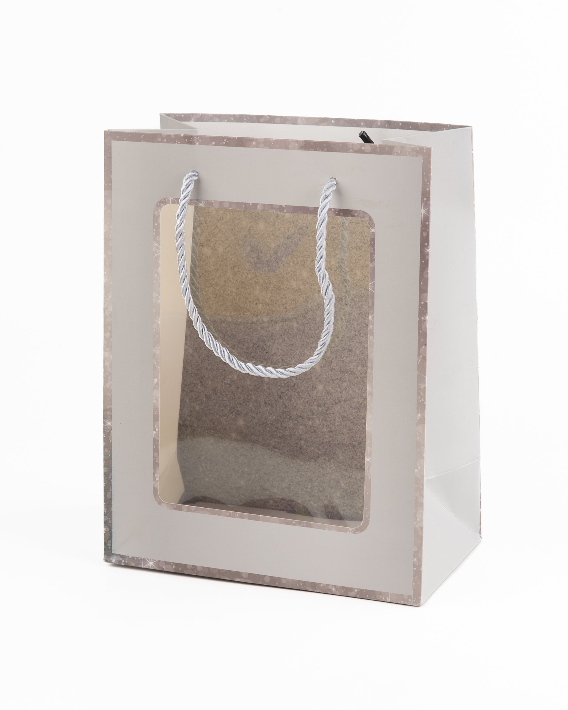 Elevate your gift-giving experience with this Assorted Colour Glitter Window Paper Bag. Perfect for any occasion, these luxurious bags are designed with a dazzling glitter finish that catches the light and adds a touch of glamour.