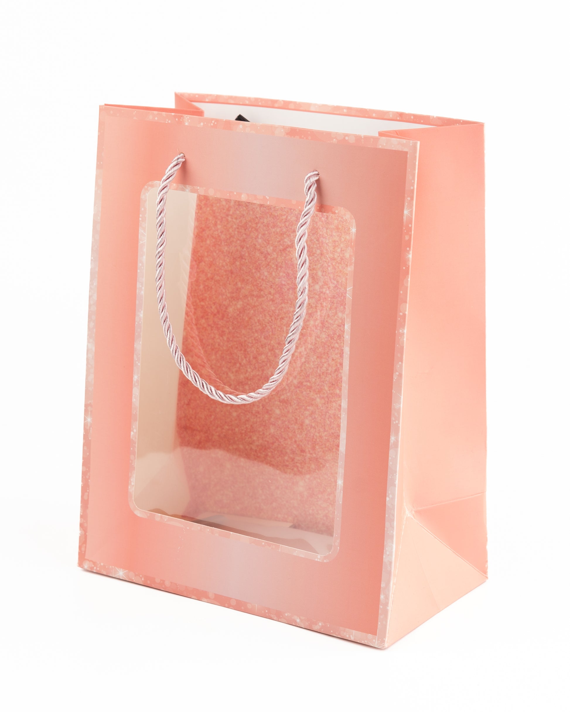 The set includes a variety of colors—soft pink, blush, white, and purple—allowing you to choose the ideal hue for your special gift. Each bag features a high-quality, twisted rope handle for a sturdy and comfortable carry. The transparent window adds an extra level of sophistication, allowing the beauty of your gift to peek through.