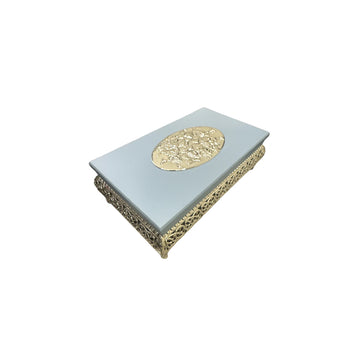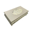 Elevate your décor with this exquisitely crafted Baroque Beauty Silverware Case, where timeless artistry meets luxurious design. Featuring a smooth matte finish lid in soft beige, this rectangular box is adorned with a gleaming embossed floral medallion, adding a striking focal point that catches the light beautifully.