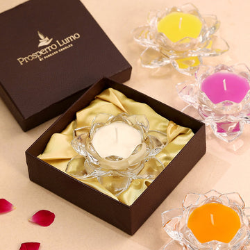 Crystal Glass Lotus Candle | Premium Tealight Holder with Candle Inside – Elegant Gifting & Décor