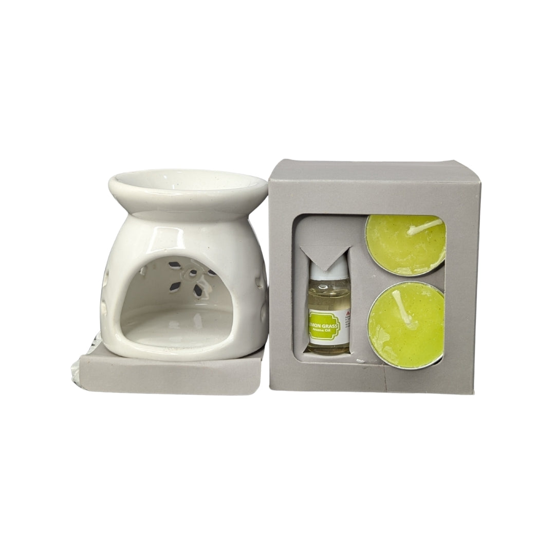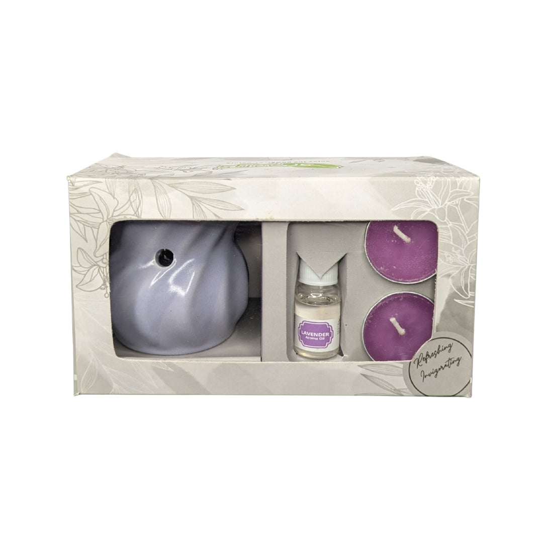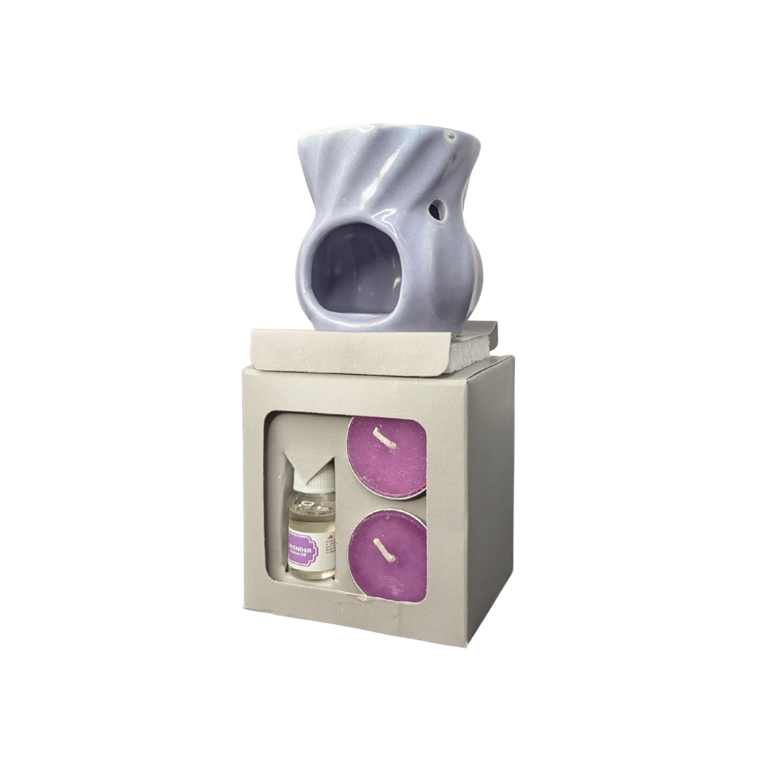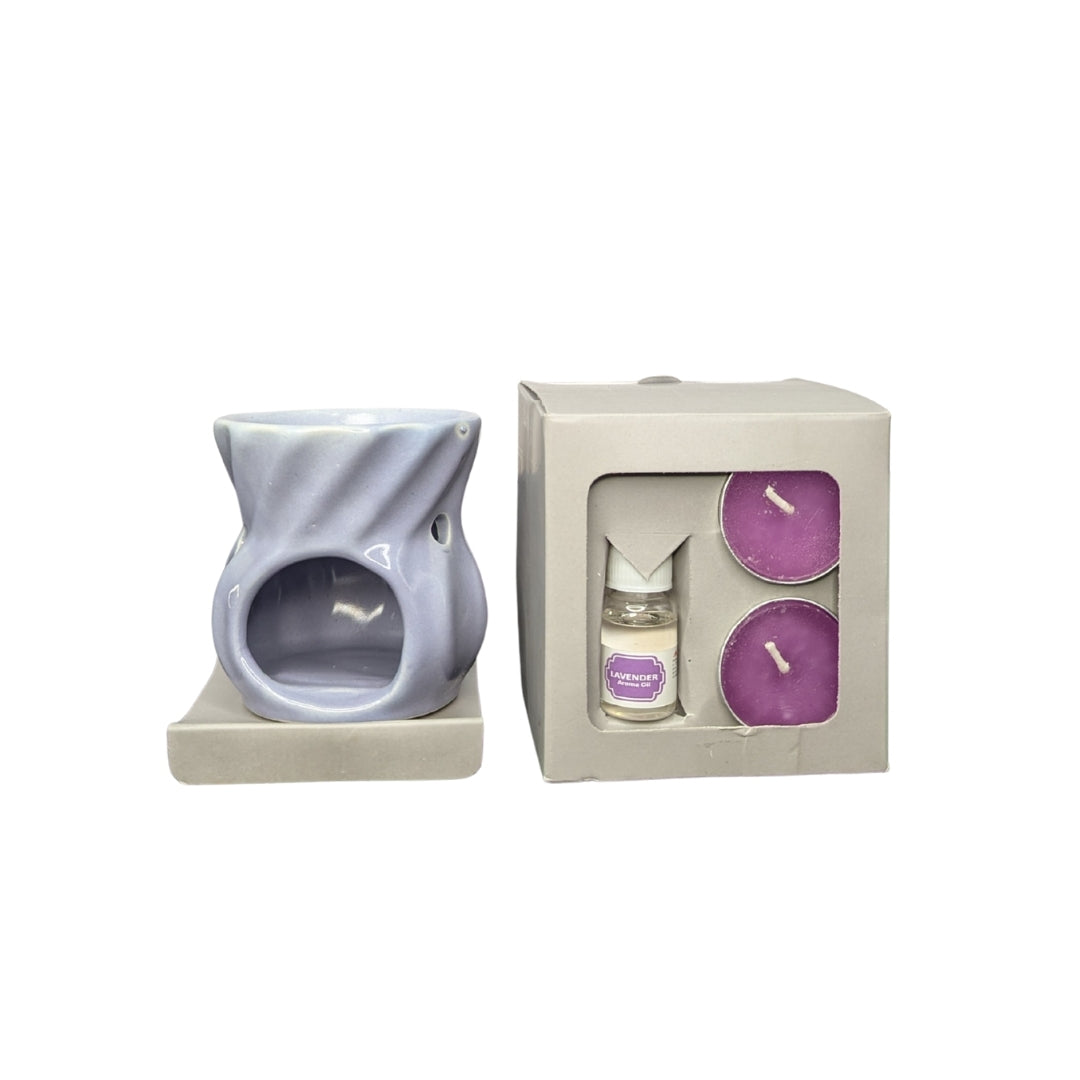 Ceramic Oil Diffuser Gift Set with Fragrance Oil & Tealight Candles Lavender Lemongrass